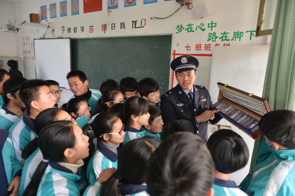 浙江黨建網(wǎng)訊1月10日上午,三門縣公安局禁毒大隊同亭旁派出所民警深入到亭旁中學(xué)開展禁毒宣傳,幫助學(xué)生掌握毒品的相關(guān)知識。(林利軍 攝)
