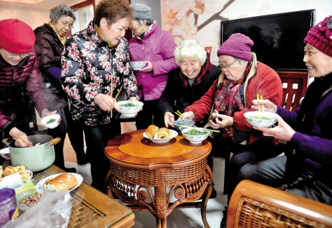 1月12日,嘉興秀洲區新城街道春曉社區,王玉英阿姨邀請“鄰里互助會”的成員聚會。據了解,“鄰里互助會”共有9位獨居阿姨,平日里她們相互幫扶,抱團取暖歡度晚年。(馮玉坤 攝)