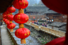 1月15日,在貴州省劍河縣觀么鎮巫包苗寨,印有中華傳統美德內容的紅燈籠高高掛起,扮靚美麗鄉村。(楊文斌 攝)