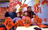 1月19日,書法家在北京市崇外街道國瑞城西區社區和孩子們展示他們一起寫的福字。