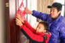浙江黨建網訊1月22日,東陽市江北街道下徐施小區,在東陽過年的云南籍小學生李安輝和家人一起貼上學校送的春聯。東陽市江北小學教育集團月亮灣校區將近50%的學生為外來務工人員的子女,因為種種原因,很多人選擇在東陽過年,為了讓他們在東陽也有在家的感覺,學校特地為部分留在東陽過年的學生送上了春聯,表達學校對他們的祝福。(包康軒 黃強 攝)