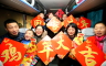 1月25日,山東即墨即發集團的外來務工人員在免費包車上合影。當日是農歷臘月二十八,在山東民營紡織服裝企業即墨即發集團工作的1000余名務工人員乘坐企業包租的免費大巴返鄉過年。據悉,該企業已經連續12年包車免費送外來務工人員春節回家。(梁孝鵬 攝)