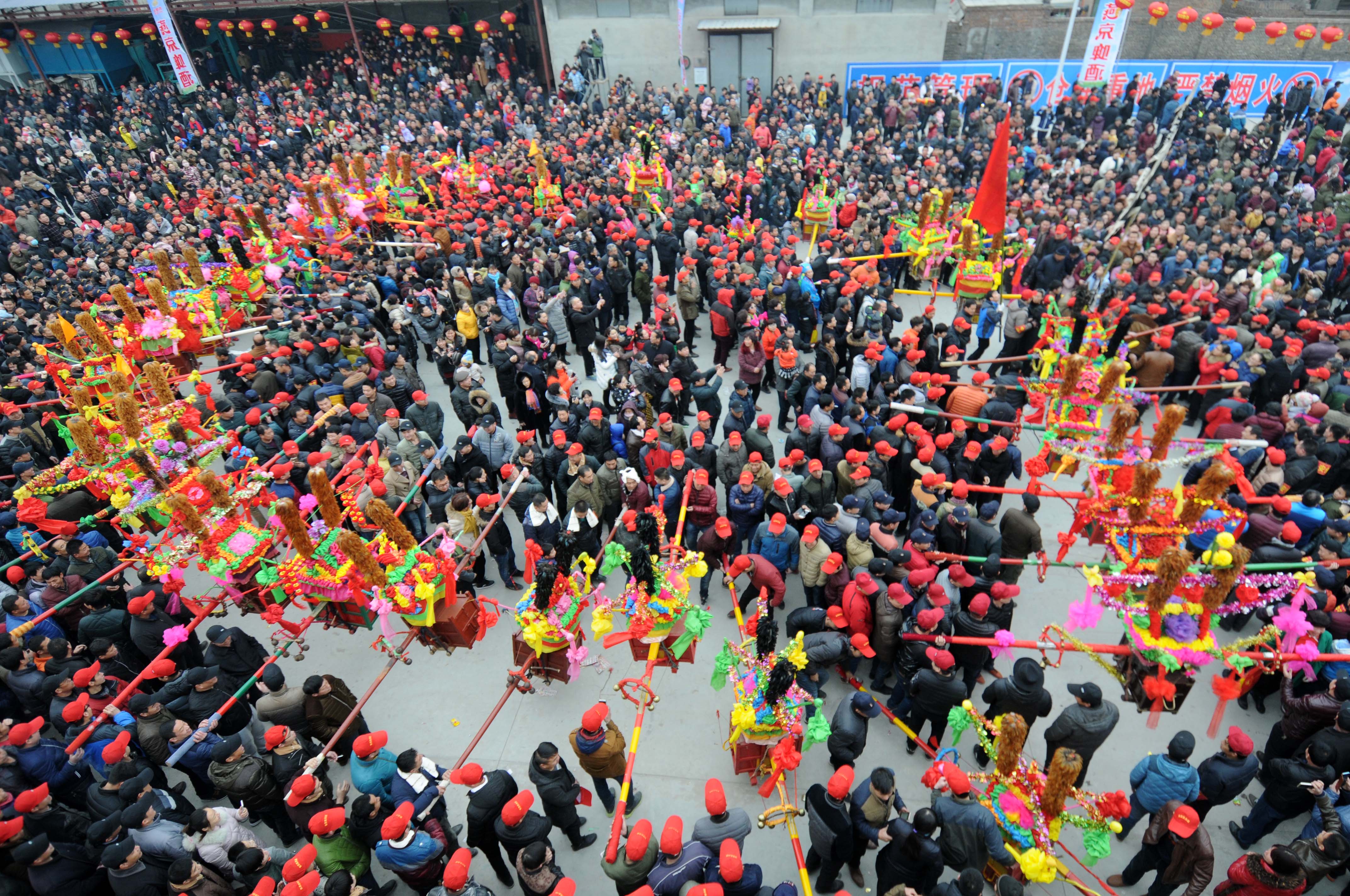 2月7日,河北省邢臺市南和縣河郭鄉(xiāng)舉辦“抬皇杠”社火表演,河郭鄉(xiāng)5個(gè)村上千村民參加了表演。東漢末年黃巾起義時(shí),邢臺一帶的百姓為黃巾軍送軍糧,后演變成南和縣的“抬皇杠”傳統(tǒng)民間活動,流傳千年至今。(朱旭東 攝)