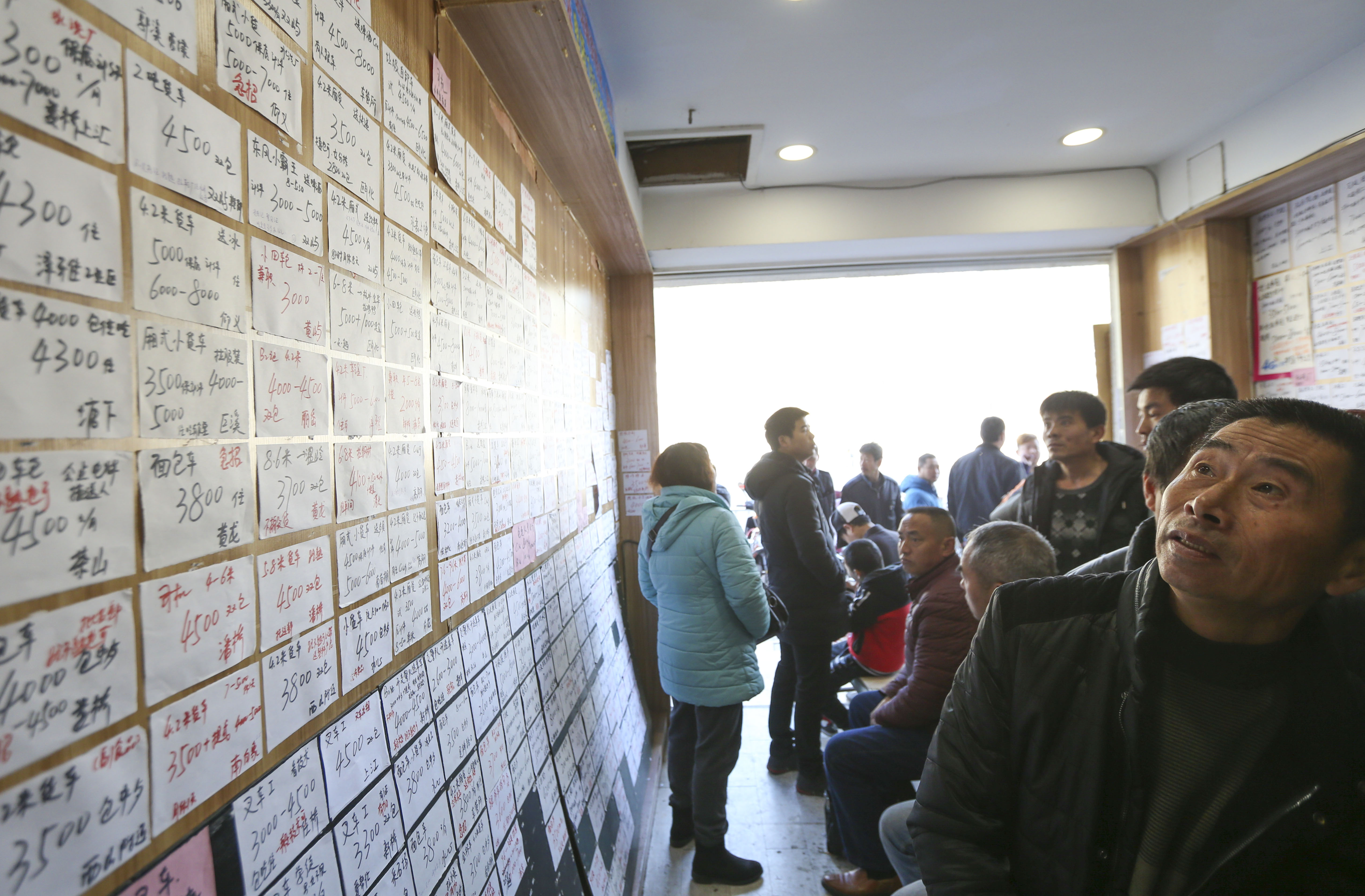 浙江黨建網訊2月14日,求職者在溫州市甌海區勞務市場找工作。元宵節過后,溫州工地、企業全面開工,溫州各大招聘市場迎來了求職最高峰。目前,溫州市勞務市場上用工缺口最大是普工,不少崗位月薪3000包吃住,但還是面臨著招不到人的尷尬局面。(蘇巧將 攝)