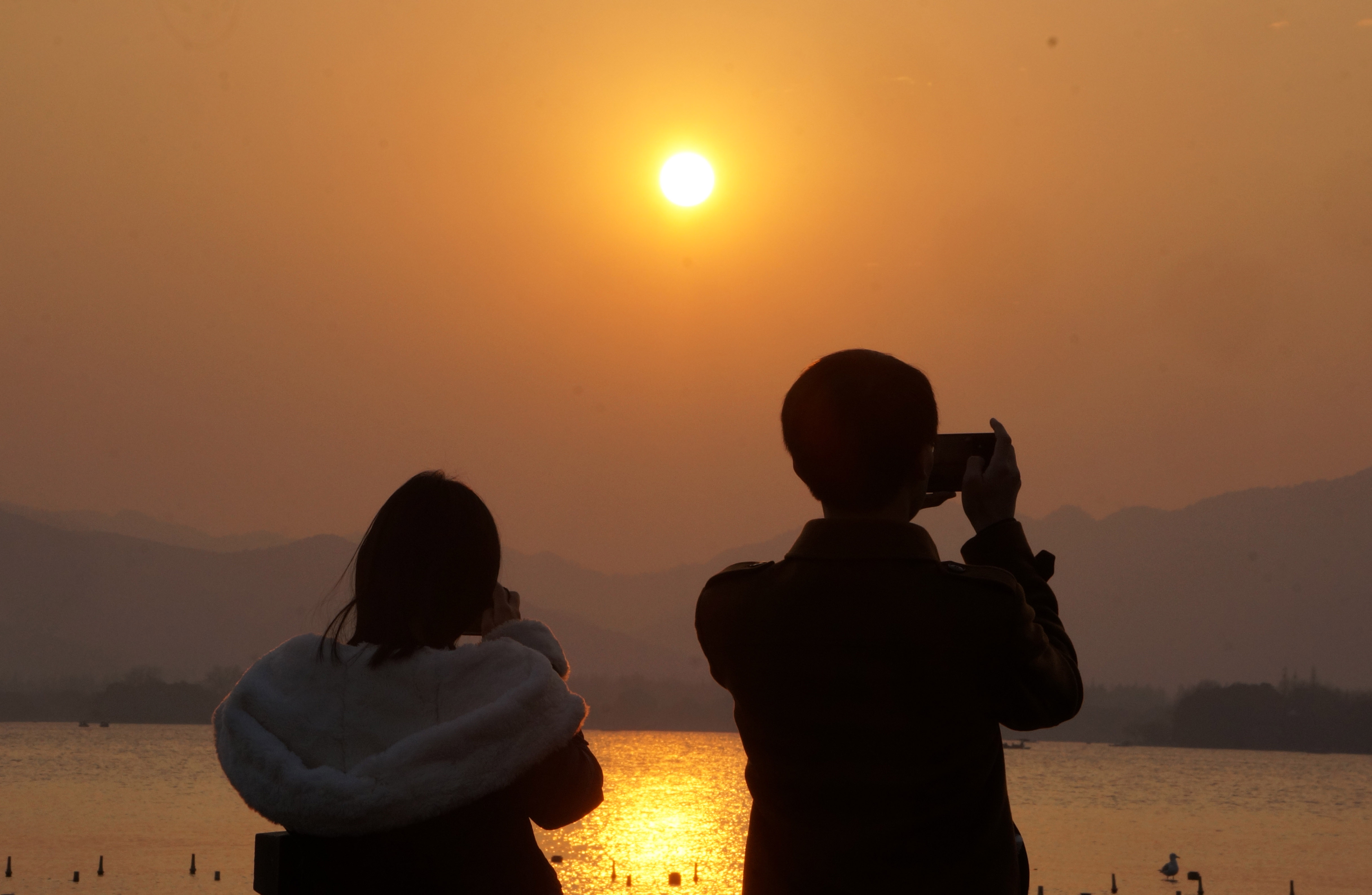 浙江黨建網訊(浙江日報記者 吳煌 攝)2月14日,杭州持續晴朗,氣溫也開始穩步回升。在西湖音樂噴泉,游客紛紛在一縷暖陽下,拿出手機、相機,爭拍西湖落日美景。