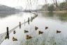 2月18日,西湖景區里的鴛鴦在湖中覓食、嬉戲,享受春日暖陽,給湖面增添了幾分靈氣和活力。(郟策 攝)