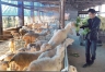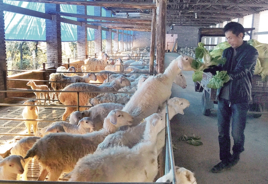 2月19日,武義智燊養羊專業合作社徐國達用菜葉喂養湖羊。2012年7月,徐國達從湖州引進23頭種羊進行試養,經過4年多的摸索,目前羊群已擴大至340多頭,實現了規模化養殖,靠養羊走上了致富道路。(張建成 王巧 攝)
