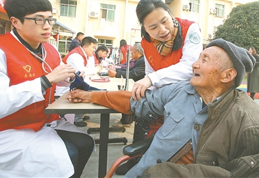 2月28日,寧波江北區莊橋街道社區衛生服務中心志愿者來到街道敬老院開展學雷鋒服務活動。12名醫生志愿者為院內80余位老人進行健康體檢,并向他們介紹春季養生保健要略,滿足老人們對醫療衛生知識及服務的需求。(徐文杰 朱冬琰 攝)