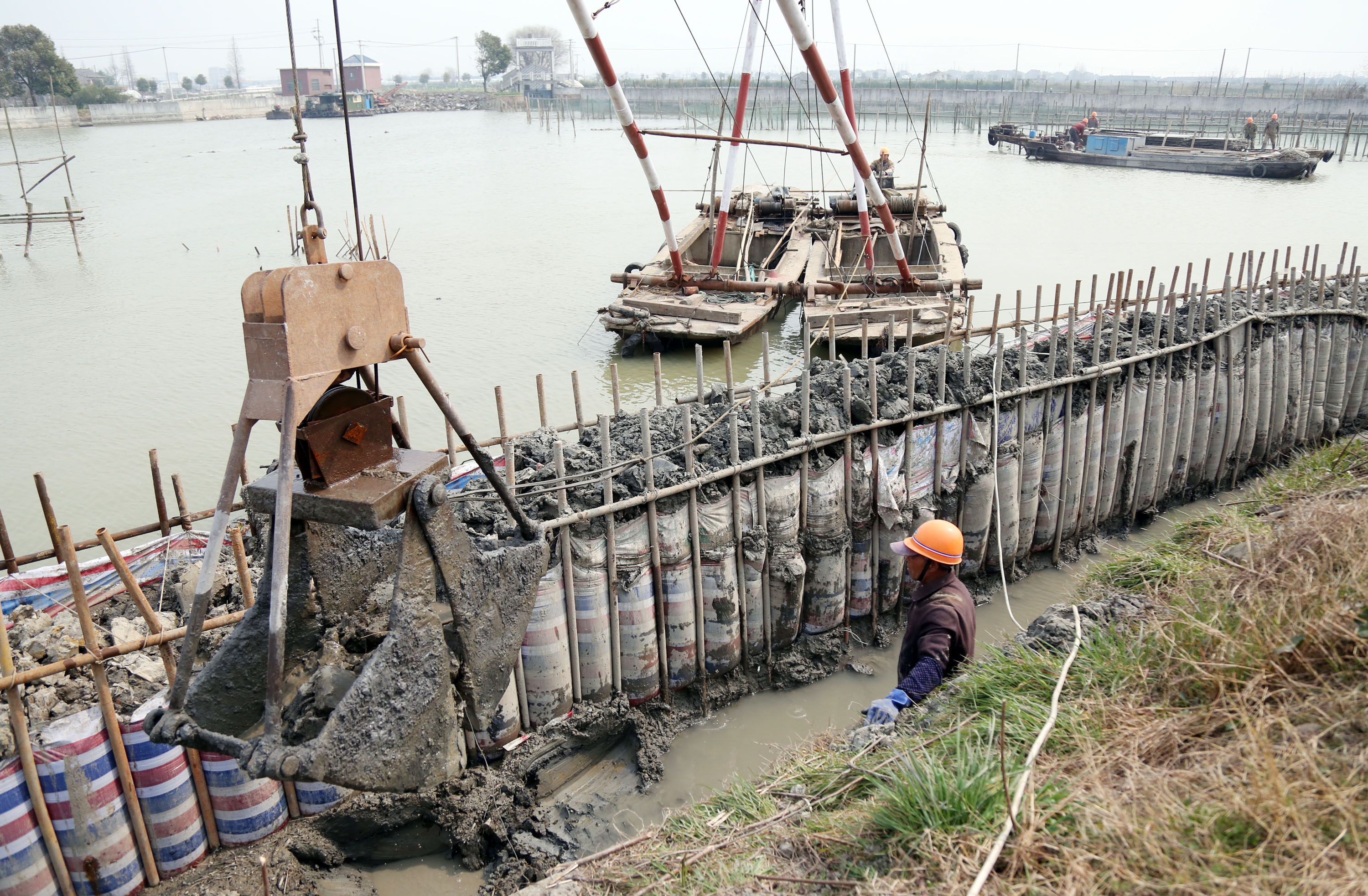 浙江黨建網(wǎng)訊3月1日,嘉善縣姚莊鎮(zhèn)界涇港村大閘港聯(lián)三圩區(qū)整治工程正在施工。今年該鎮(zhèn)水利工程計(jì)劃投資5千萬元,完成聯(lián)三、丁東、窯浜斗三片圩區(qū)建設(shè)任務(wù)。(胡凌翔 邢樂靜 攝)