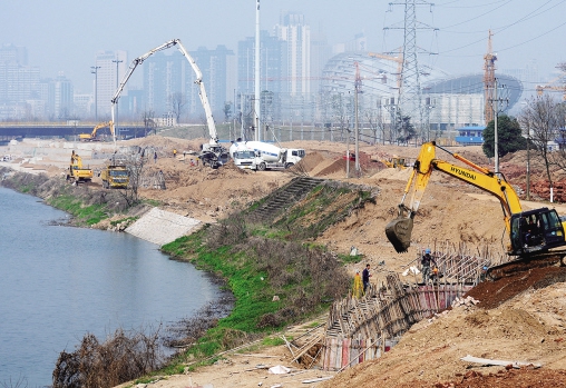 3月1日,在金華市武義江東岸(金婺大橋至李漁大橋段)沿江綠化帶工程工地上,浙江晟民園林建設(shè)有限公司施工人員利用晴好天氣,抓緊開挖土方,澆筑擋墻混凝土。