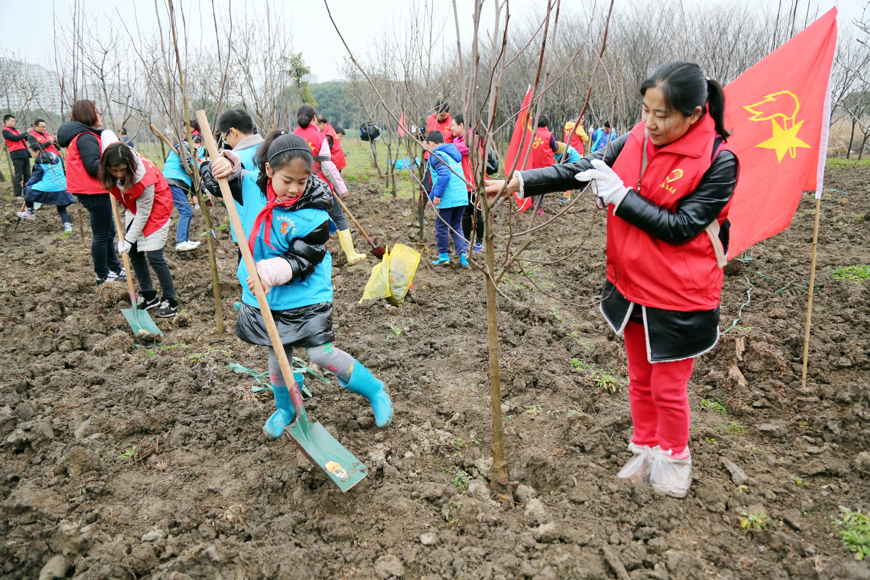 浙江黨建網訊3月5日,嘉善縣白水塘路與城西大道交叉口處的嘉善共青林里,100多名少先隊員、青年志愿者、消防戰士參加了“為春色添彩·為美麗助力”植樹活動。(胡凌翔 唐赟路 攝)