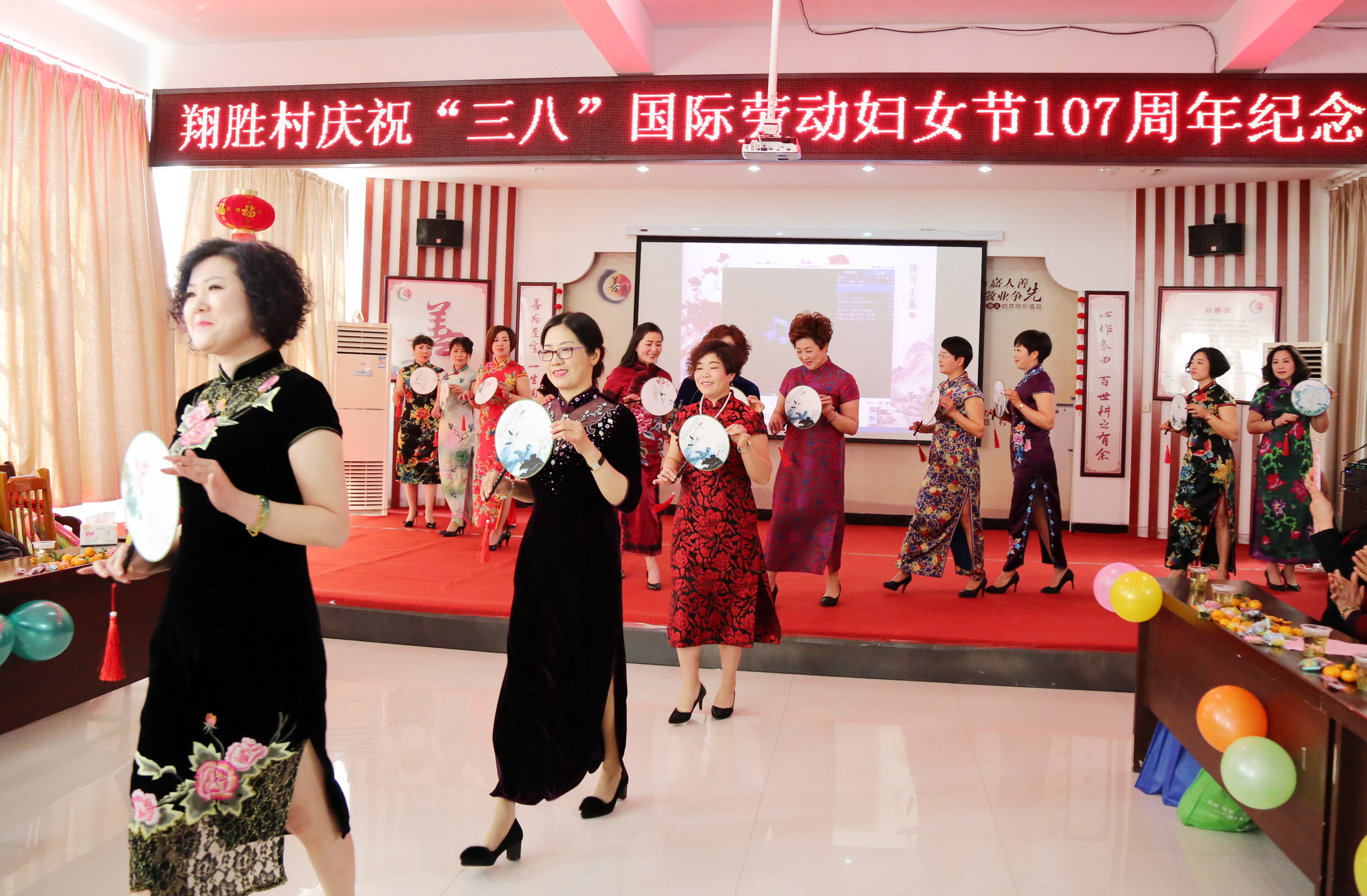 浙江黨建網訊3月7日,嘉善縣陶莊鎮婦聯、計生協在翔勝村文化禮堂舉行慶祝“三八”國際勞動婦女節活動。該鎮14名女企業家表演的秀色滿園旗袍秀,展現出這些女強人嫵媚、優雅的女人味,引得現場觀眾紛紛拿起手機一陣猛拍。(胡凌翔 毛麗娟 胡艷 攝)