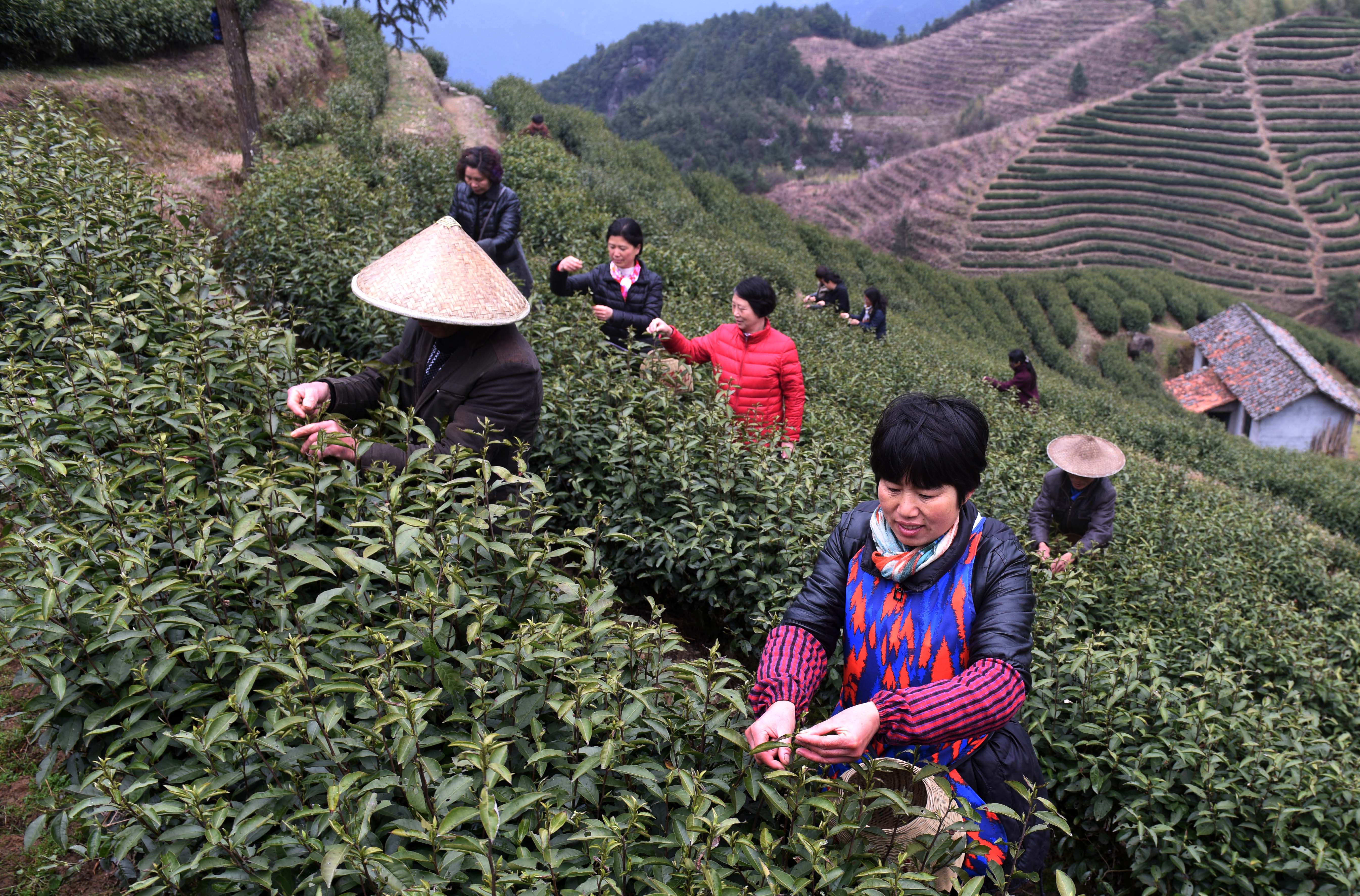 浙江黨建網訊3月30日,茶農在海拔960多米的武義縣安鳳村湯記金山頭茶園采摘高山茶。