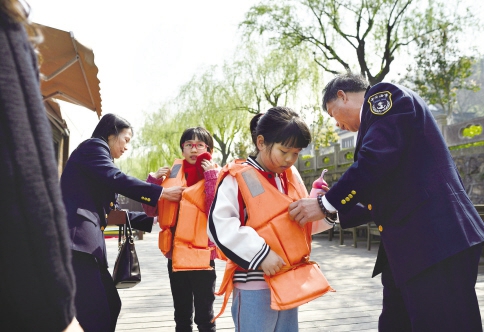 清明期間,海鹽縣港航管理處對南北湖風(fēng)景區(qū)內(nèi)游船碼頭開展了一次全面的安全大檢查,并現(xiàn)場向游客宣傳水上安全知識。(徐志達(dá) 趙奕曼 攝)