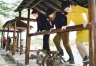 4月4日,在金華開發區湯溪鎮白鶴殿口村厚大溪堤壩上,三架新建的水車剛完工,不少在此游玩的市民上去體驗了一把。(李建林 貢小兵 攝)