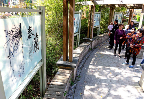 4月12日,在嘉興東柵街道云陽社區紫竹名苑的景觀廣場,有居民駐足欣賞最新布置的廉政長廊。據了解,社區通過建設“清風長廊”,向廣大居民宣傳廉政文化,提高反腐倡廉意識。(聞人達 潘麗 攝)