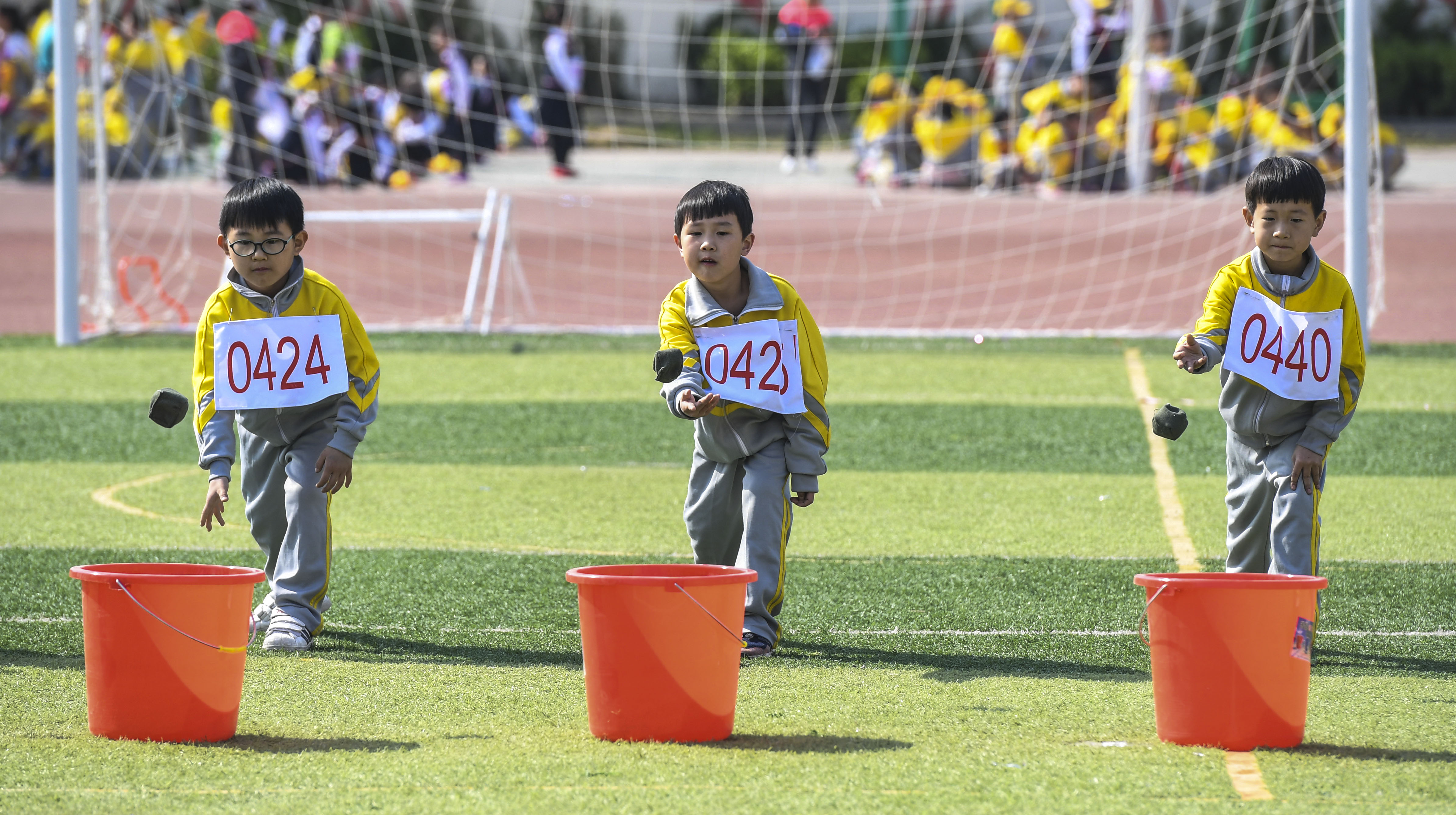 當日,河北省大廠回族自治縣城區二小開展趣味運動會,小學生運動員在趣味障礙跑、沙包擲準等6項比賽中進行激烈角逐,盡情享受春日運動帶來的快樂。(李曉果 攝)