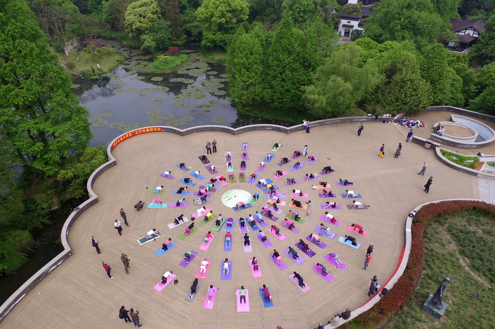 浙江黨建網訊4月16日,杭州市婦女活動中心在杭州花圃舉行“西子女性大講堂”之戶外瑜伽公益活動,吸引了杭州市100余位女性瑜伽愛好者報名參加。(徐暉 攝)