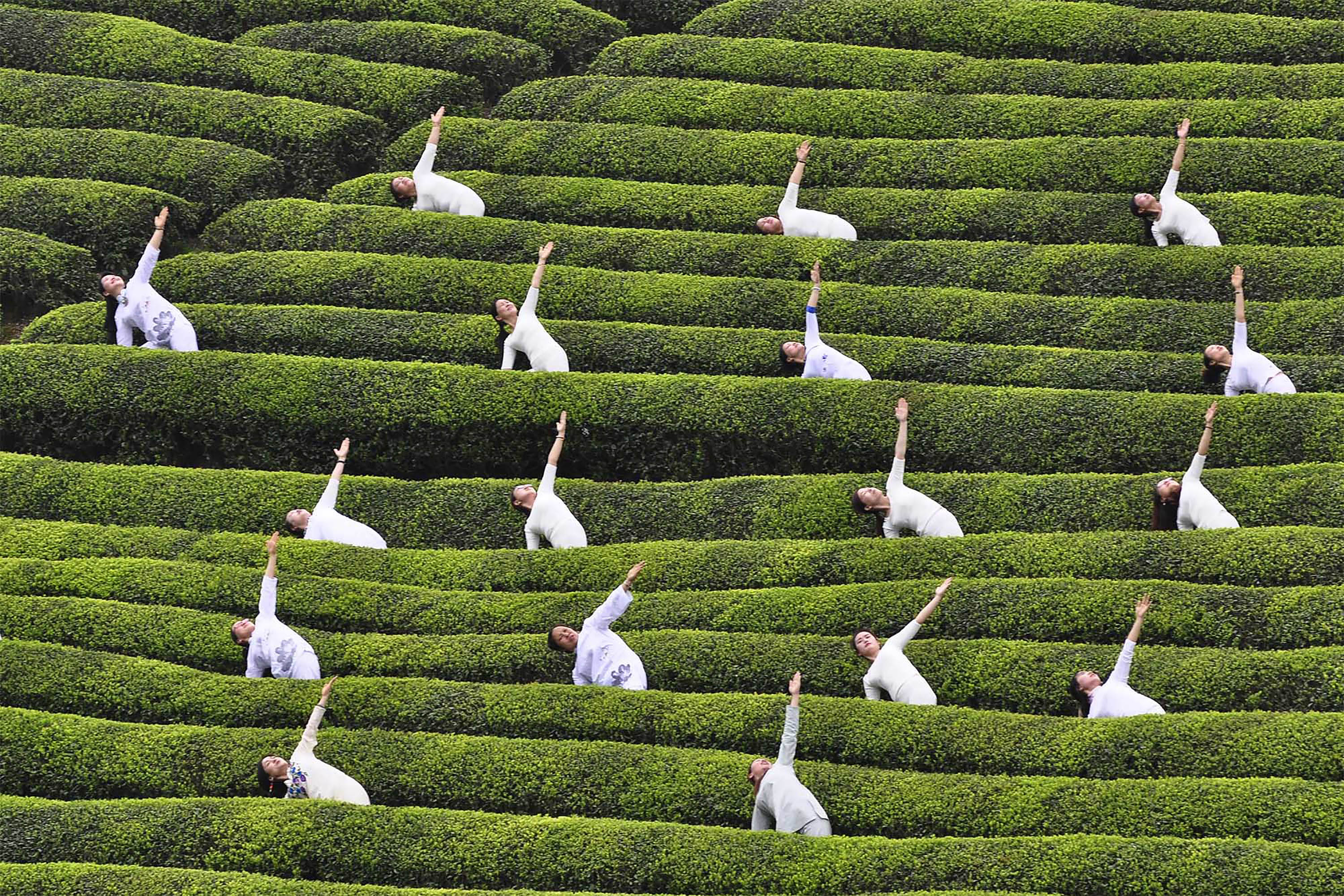 高山茶園秀瑜伽 萬綠叢中點點白