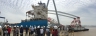 4月19日,舟山市岱山縣秀山島上的常石集團(舟山)造船有限公司迎來40位游客,這是秀山島首次推出的工業游試點項目,也是舟山首個以船舶工業為主題的旅游項目。圖為游客們正在參觀新船出塢場景。(趙嘉波 林威威 林上軍 攝)