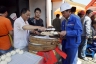 浙江黨建網(wǎng)訊“五四”前夕,舟山市定海區(qū)一家包子店女主人、80后市道德模范劉運紅,邀請舟山新城建筑工地近千位農(nóng)民工免費吃放心包子,她一共向農(nóng)民工們送出了15000多只包子。她以此舉弘揚五四精神,向勞動者致敬。(胡社友 攝)