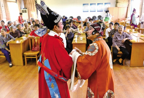 5月11日,在嘉興新興街道文昌社區,一出講述母親故事的大戲《雙狀元》登臺上演。這是母親節來臨之際,嘉興管佳勞務公司邀請小燕子藝術團為轄區“老媽媽”們獻上的一份禮物,感恩母親們含辛茹苦養育子女。(陳榮 攝)