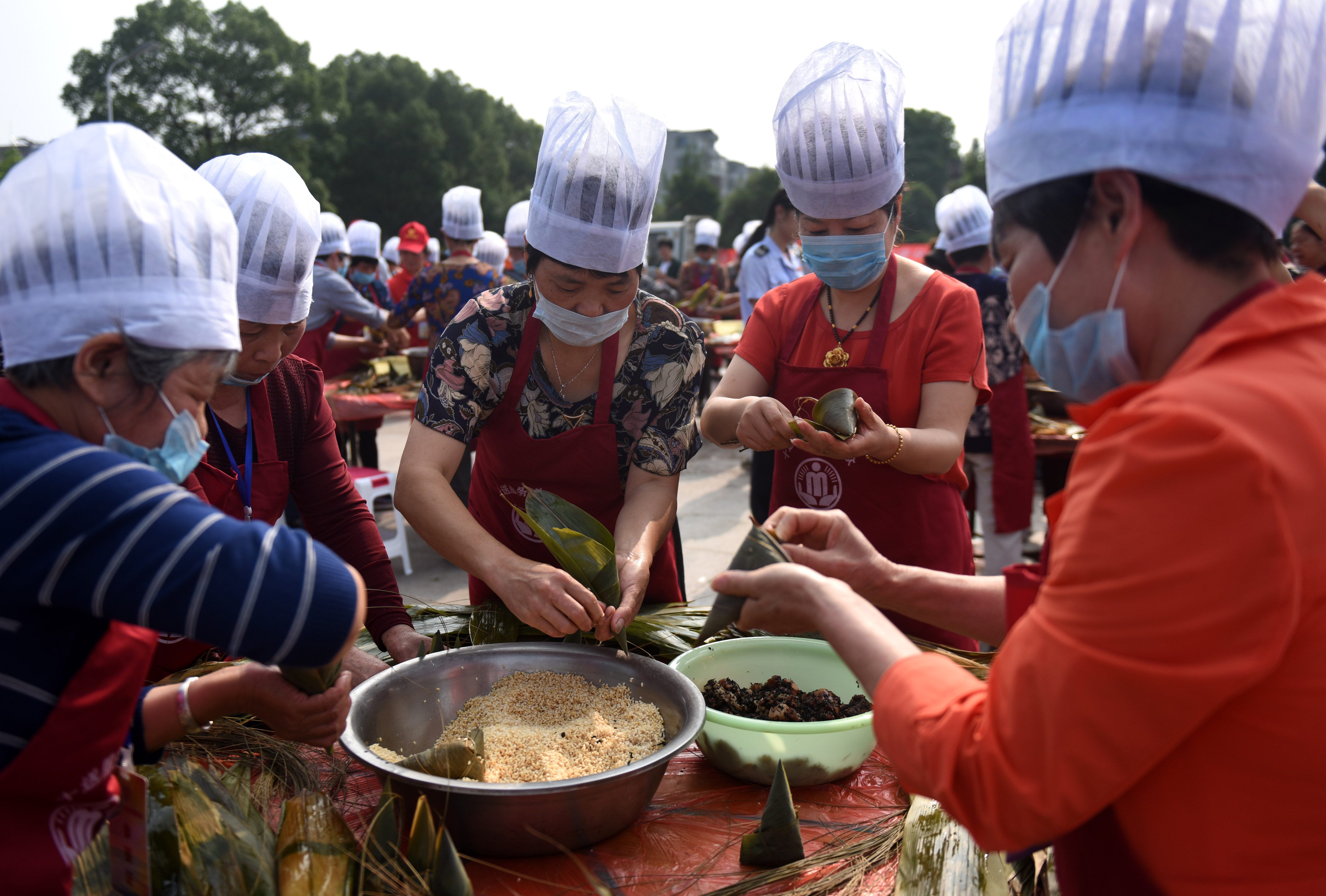 浙江黨建網訊5月25日,武義縣濱江廣場上舉行了一場“粽情武川 情系熟水”包粽大賽。來自各社區、鄉村的120名優秀選手在規定的時間內以包粽子的個數多少、外觀美觀度、外形勻稱度等標準決勝負,喜迎端午節。(張建成 攝)