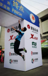 “飛一般的感覺”--2014杭州國際馬拉松,黨支部成員堅持跑到終點后,跳躍慶祝。