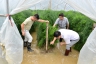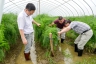 6月21日,長興縣農業局黨員農技干部沈林章、寧國云正在該縣和平鎮長城村的蘆筍種植基地察看農作受災情況,指導農戶進行災后自救。6月20日,長興縣普降大雨,和平、泗安、虹星橋等鄉鎮部分農作物受淹。對此,農技干部紛紛下鄉,指導農戶進行災后自救。