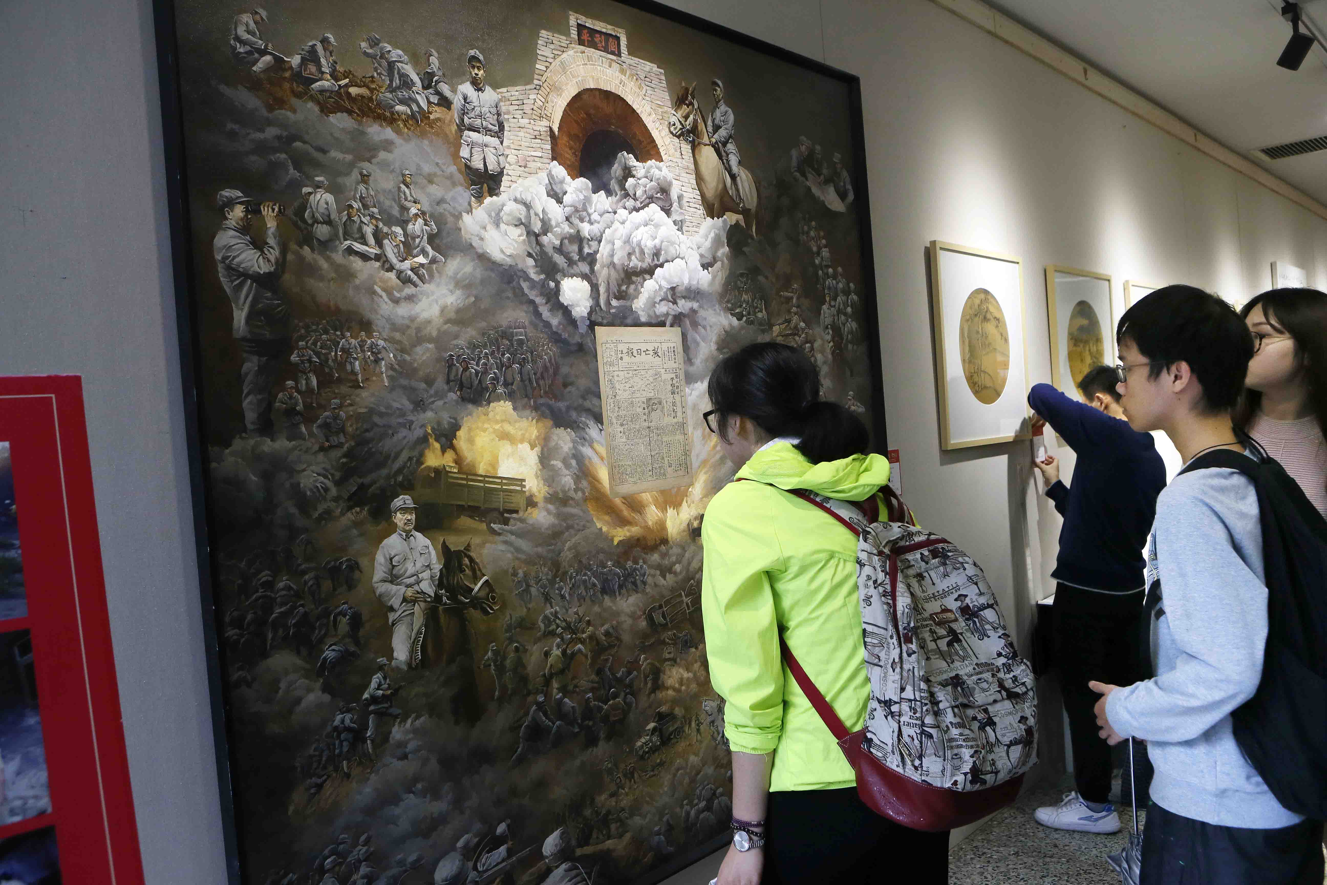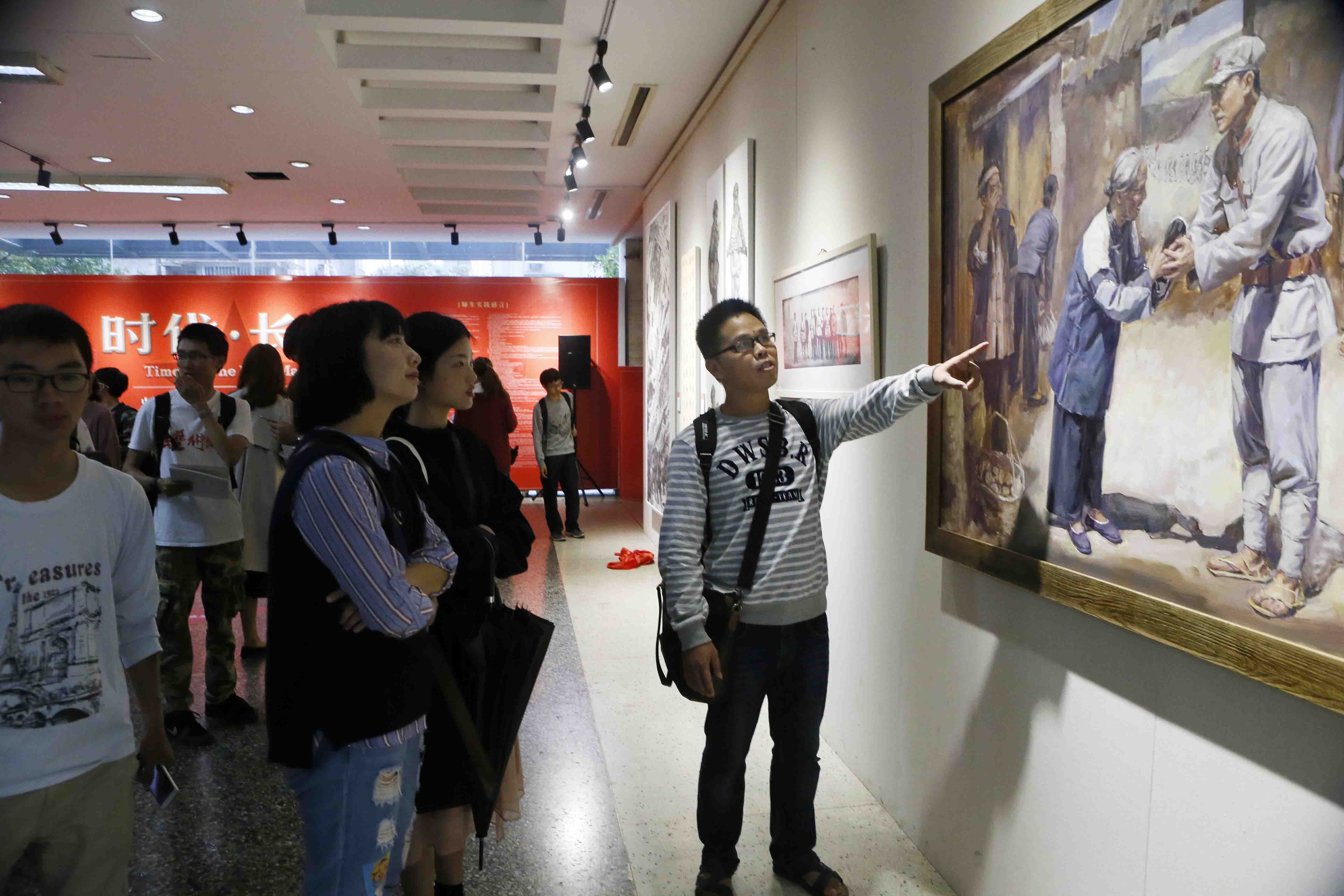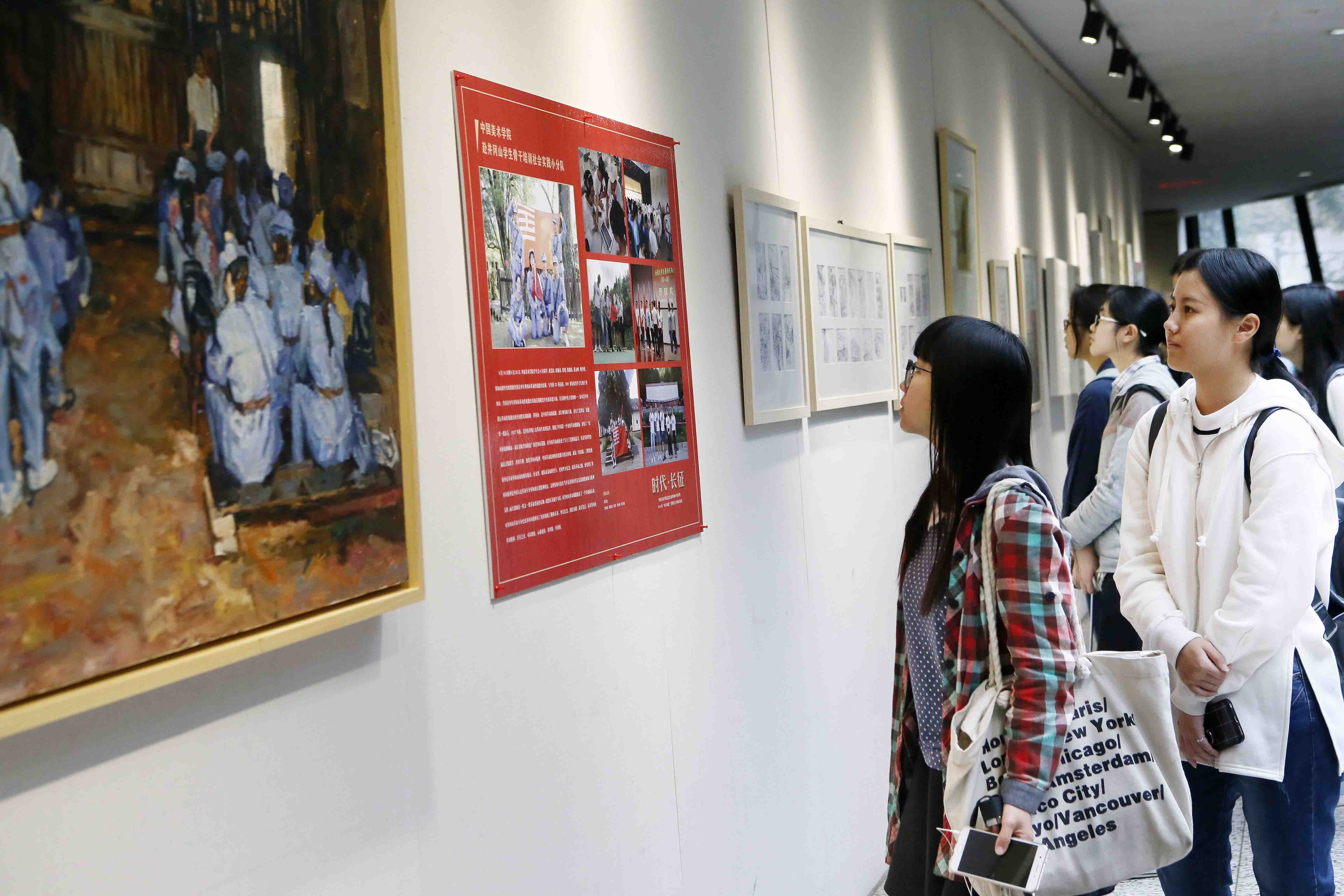 圖為師生觀看紀(jì)念長征的藝術(shù)作品。