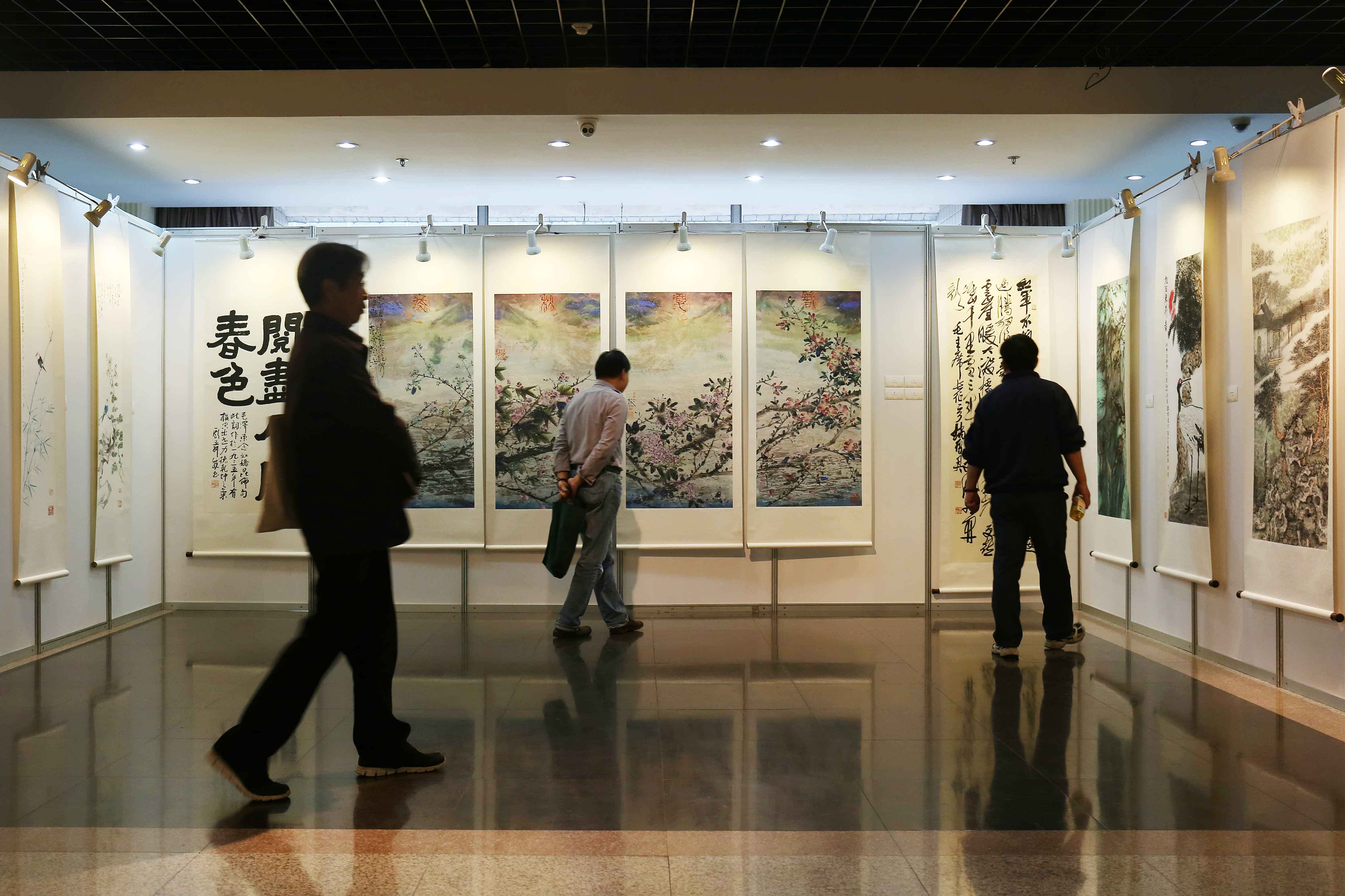 浙江黨建網訊(浙江黨建網記者 陸偉 攝)10月25日,市民正在浙江圖書館參觀“不忘初心 丹青銘志”紀念長征勝利80周年暨建黨95周年主題書畫展。