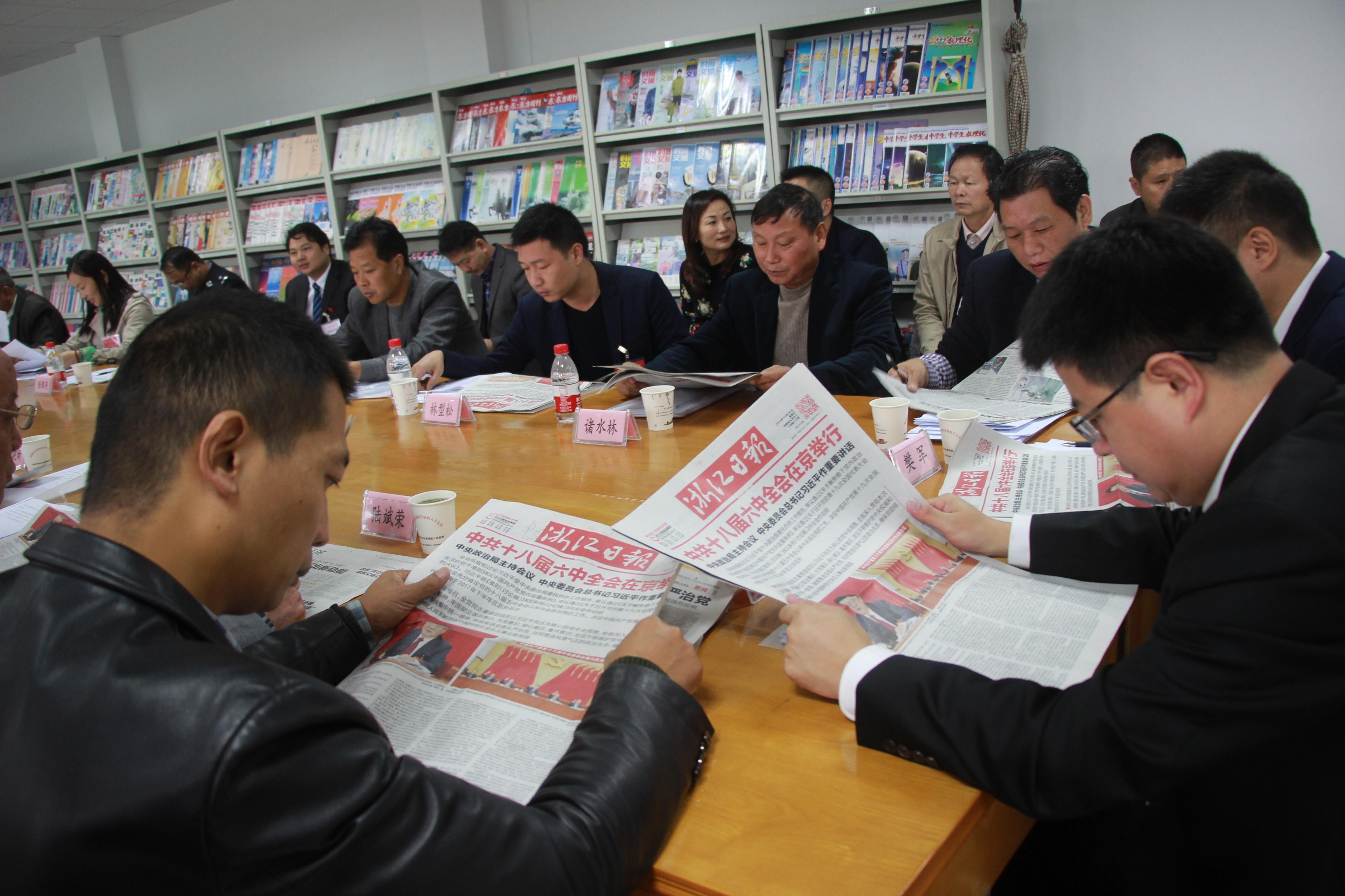 浙江黨建網訊10月31日,湖州市吳興區埭溪鎮,參加鎮第十四次黨代會的農村代表,利用午休時間,認真學習黨的十八屆六中全會精神。(鄧德華 攝)