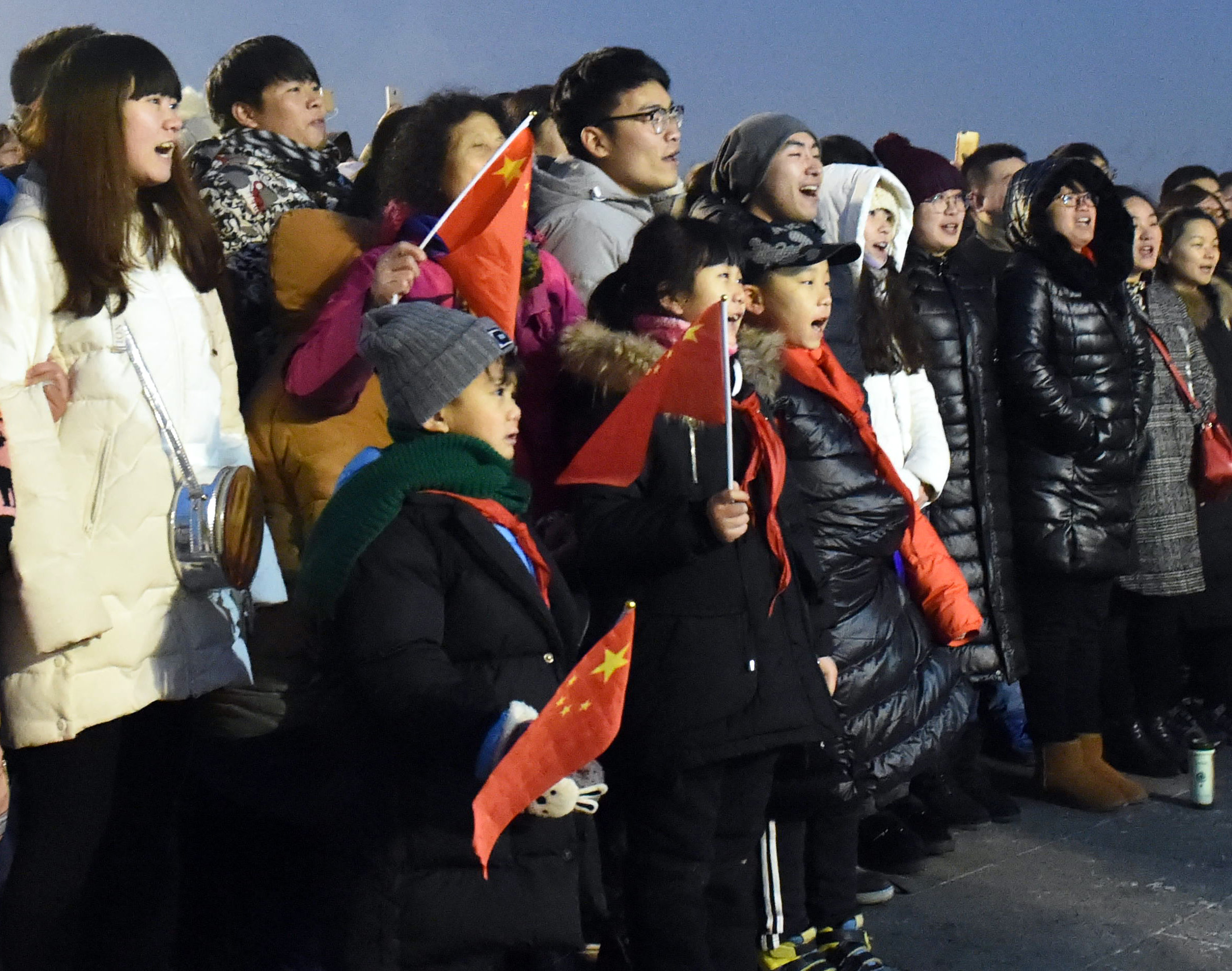 來(lái)自全國(guó)各地的26000多名群眾觀看升國(guó)旗儀式,迎接2017年的到來(lái)。