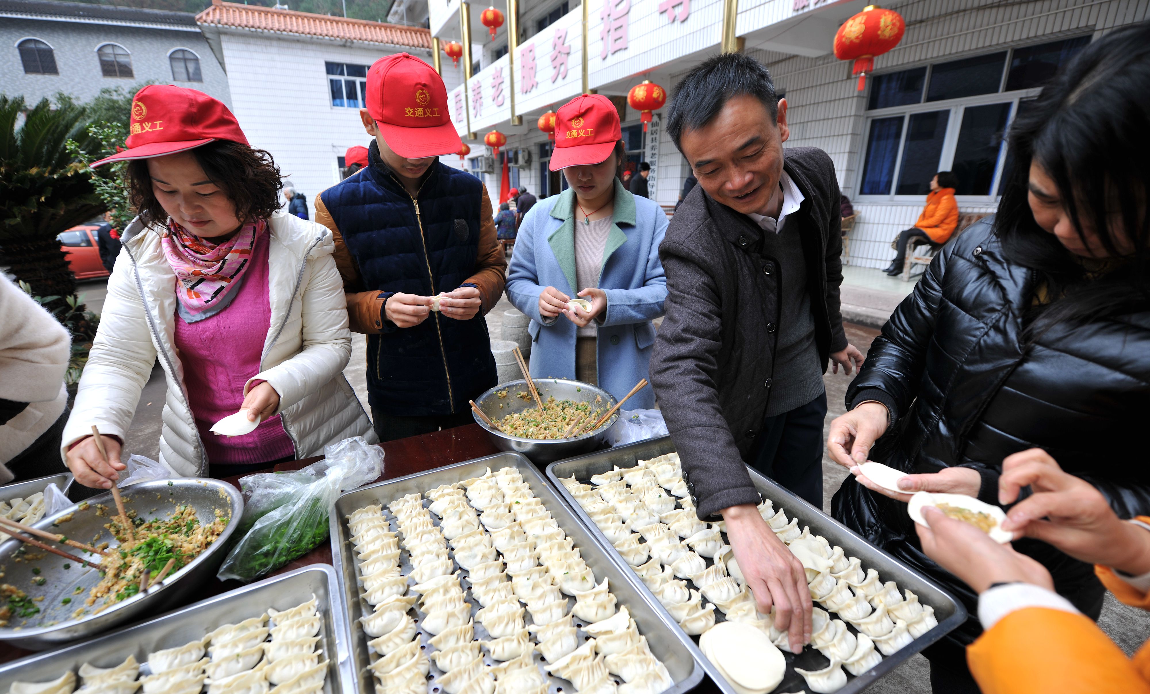 2月5日,仙居縣公路管理局黨員志愿者走進城關福利院,給老人理發、修趾甲、包餃子等,為老人送去新年的祝福。(王華斌 攝)