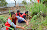 浙江黨建網(wǎng)訊4月12日,在溫嶺市濱海鎮(zhèn)新勝村雨傘浦的河道中,黨員志愿者們正在用鐮刀割除水中的蘆葦。