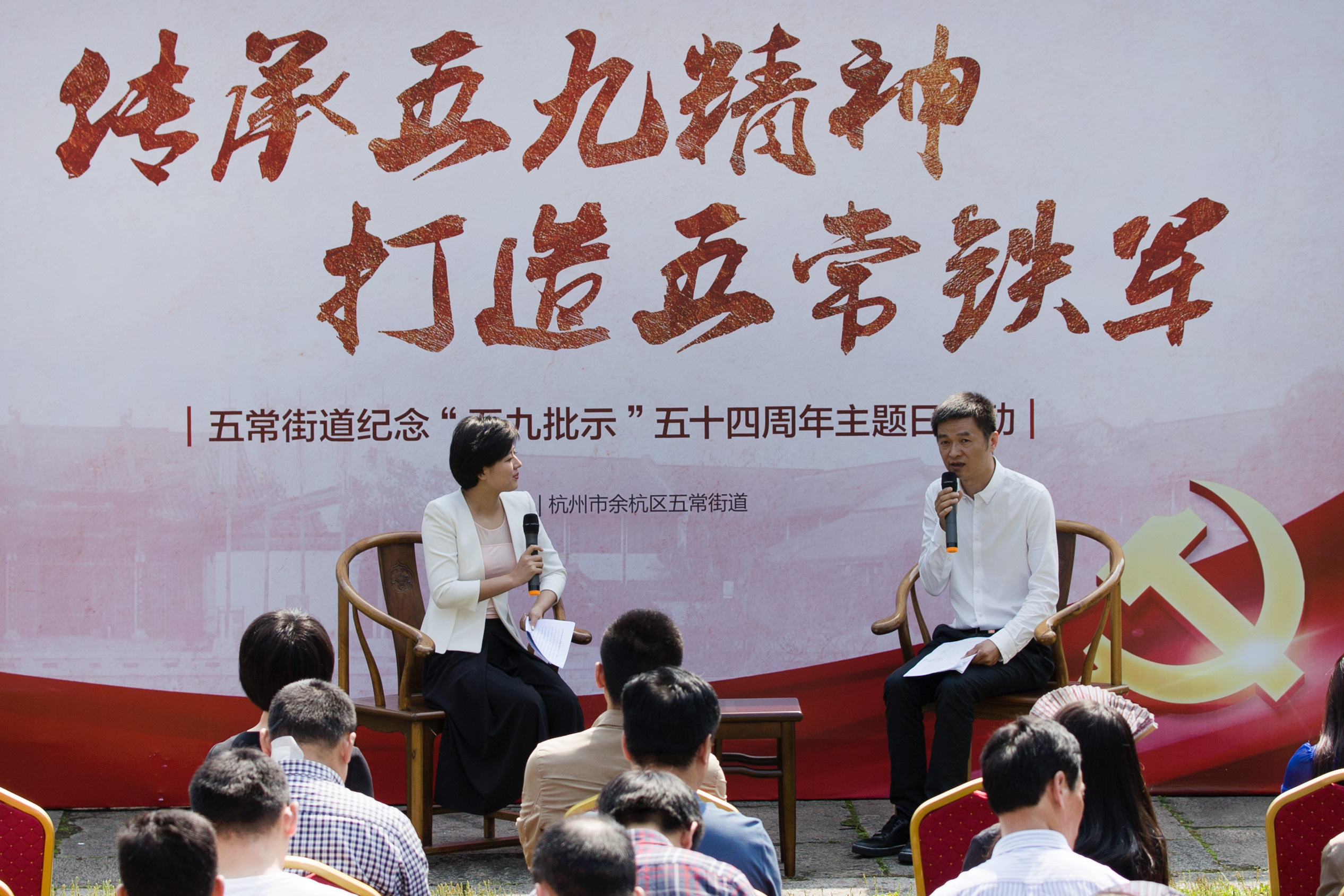 浙江黨建網訊(記者 陸偉)5月9日是"五九批示"五十四周年紀念日。當日上午,一場圍繞“傳承‘五九’精神,打造五常鐵軍”的新老黨員對話,在杭州西溪濕地五九橋畔拉開帷幕。參加現場黨課的既有當年“五九批示”的參與者、見證者洪大根,也有現在的黨員干部代表、新一任社區書記等。 下午,杭州市余杭區五常街道組織黨員干部開展廣場志愿服務、“美麗余杭”清潔家園、剿滅劣V類水等活動。五常社區文化禮堂還舉辦了“五九精神”宣講和“平安故事會”,為社區居民帶來一堂干貨滿滿的安全防范課。五常街道黨員干部以實際行動詮釋走在前列、干在實處、勇立潮頭的“五常鐵軍”的精氣神。 相關背景 1961年,中央出臺《農村人民公社工作條例(草案)》,要求大隊一級的干部全年參加勞動的時間不少于120天。通知一下達,余杭全區的干部們就積極響應起來。最后,五常公社脫穎而出。1963年毛澤東到杭州視察,《五常公社大隊干部參加勞動情況的調查報告》作為浙江省委上報的七個關于干部參加勞動的材料之一,在5月9日得到了毛主席的長篇批示(簡稱“五九”批示)。該批示高度肯定了五常等地干部辛勤勞動、密切黨群關系的作風,相關的文件在全黨印發,《人民日報》《解放日報》《浙江日報》《杭州日報》等眾多媒體也相繼作了報道,在全國范圍掀起了學習的熱潮。由此便形成了以“吃苦耐勞、無私奉獻”為核心的“五九”精神。