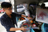 潘震興的車內擺滿了繪畫所需要的工具。