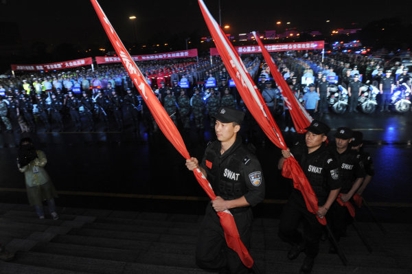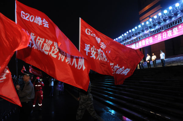 在距離G20杭州峰會100來天的關(guān)鍵時刻,當日晚,東陽市在市行政中心廣場召開千人誓師大會,對G20杭州峰會維穩(wěn)安保工作進行再動員、再部署,發(fā)出誓師決戰(zhàn)的總號令。