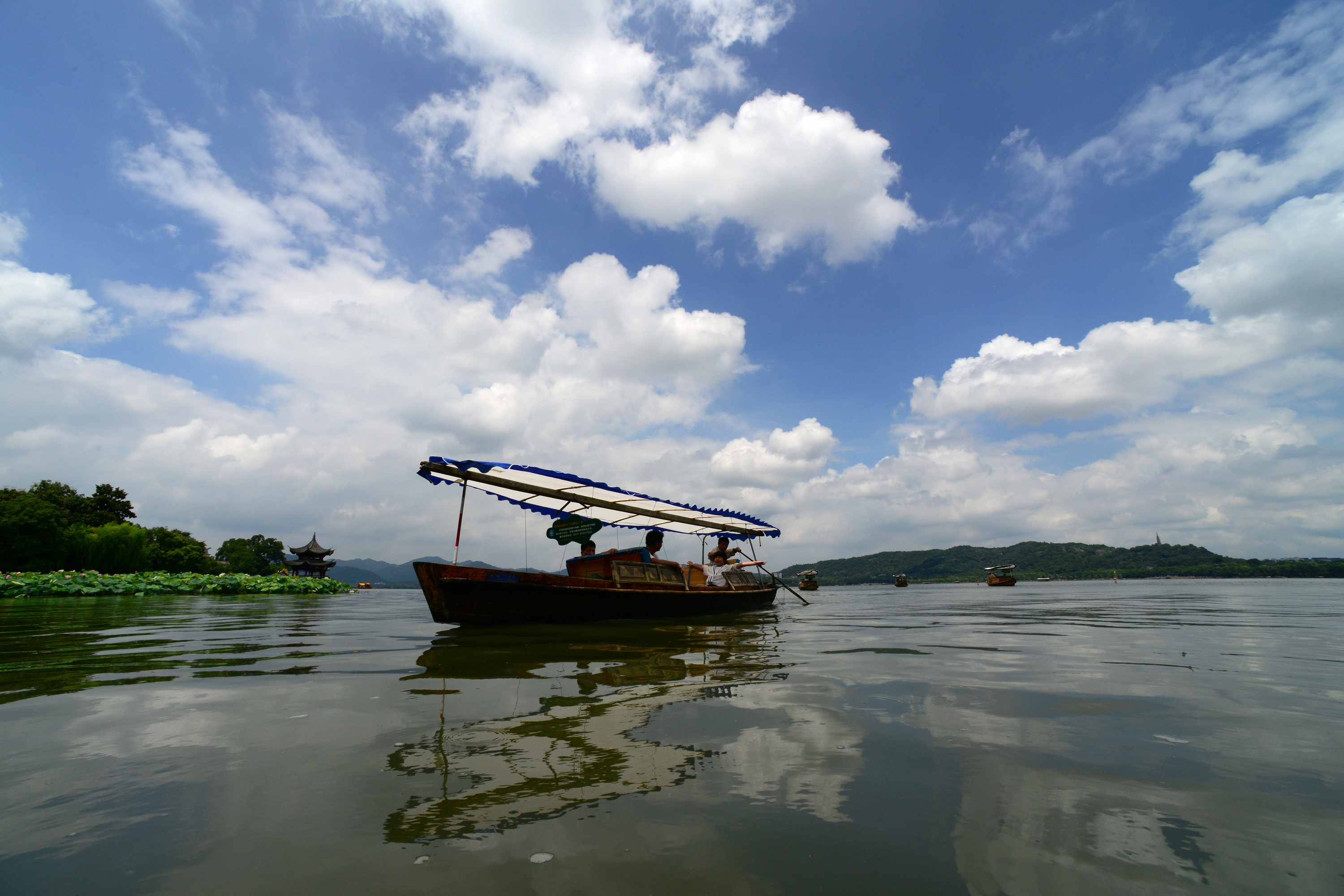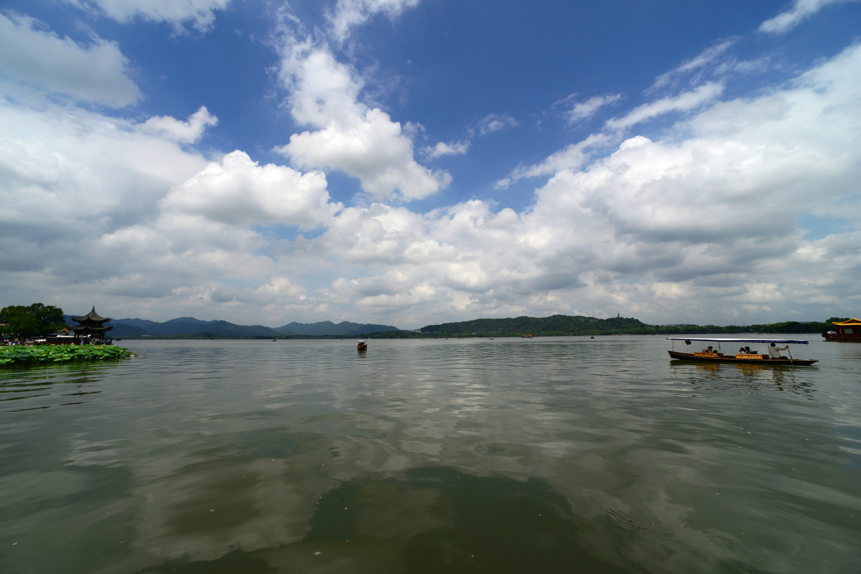 浙江黨建網訊7月8日,杭州的天空上演了一出出云彩大戲,朵朵白云點綴西湖,呈現出令人心曠神怡的圖景。(里爾 攝)