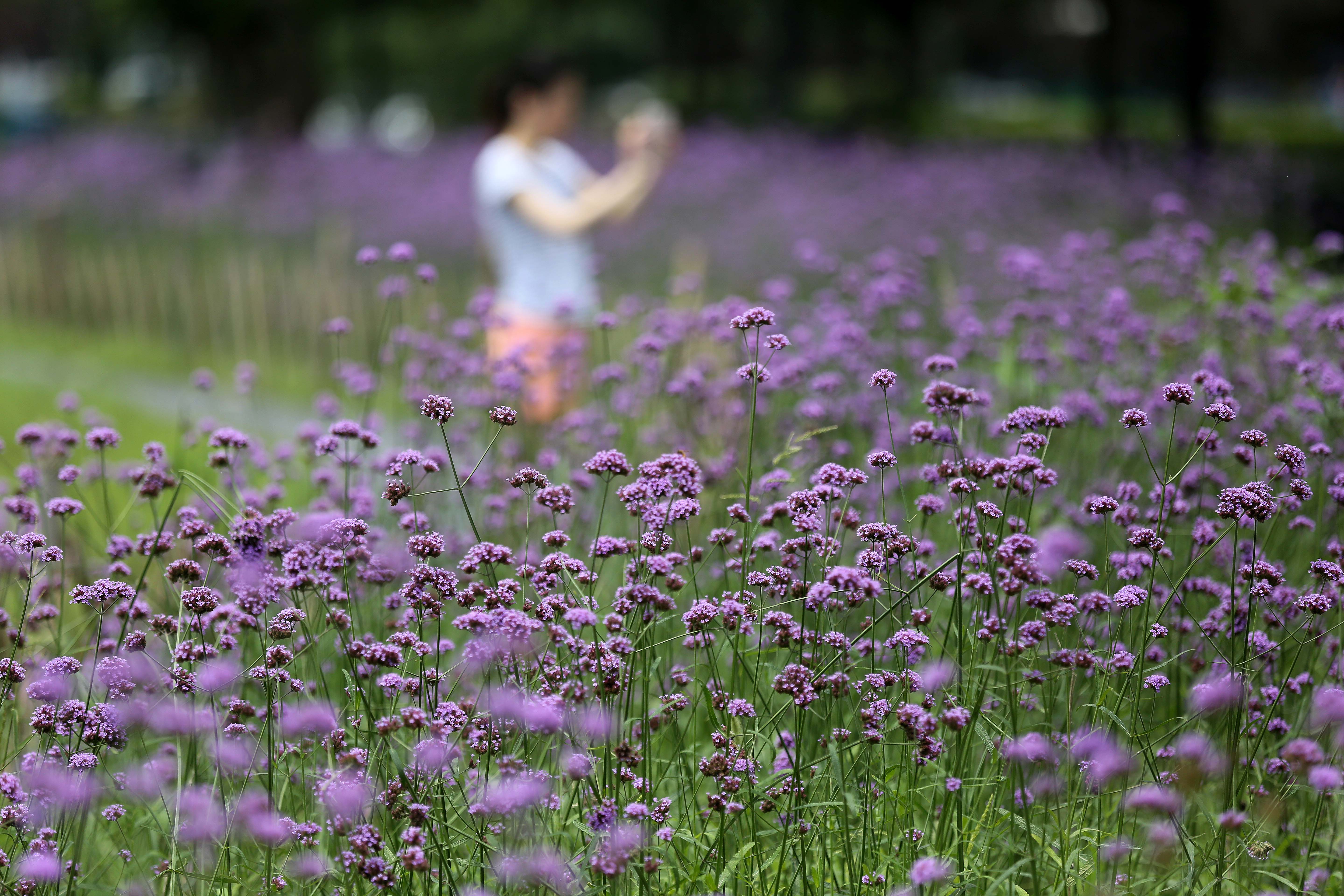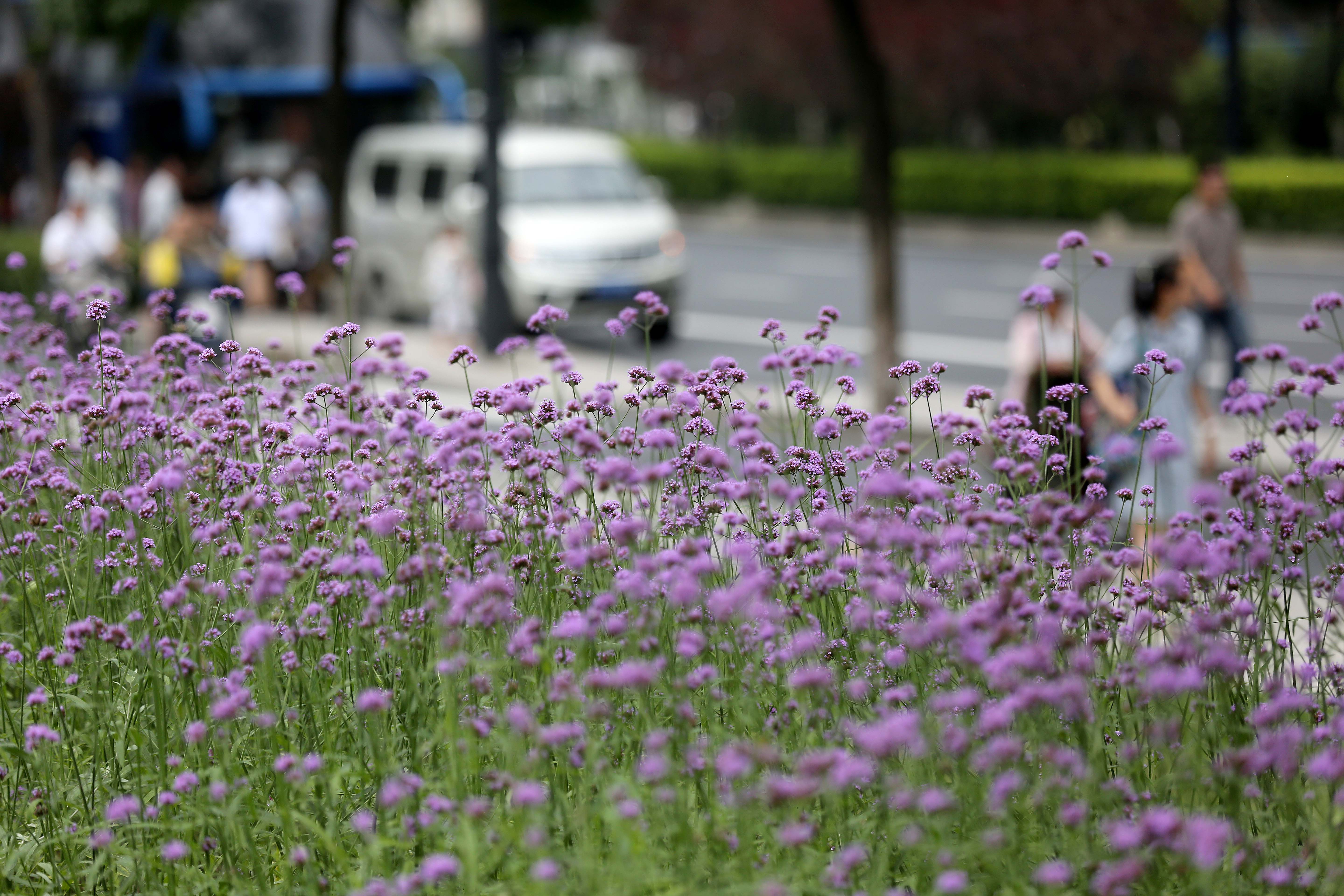 浙江黨建網訊(浙江日報記者 魏志陽 攝)7月19日,杭州大關路上塘路口一簇簇馬鞭草濃情綻放,給夏日杭州增添一抹紫色浪漫。游人、蜜蜂、蝴蝶與紫色花海交織成一幅優雅的城市山水田園畫卷,讓市民不出城即可赴一場紫色浪漫之約。這是大關路整治提升工程將一些閑置土地改造成花海,改善了道路景觀。