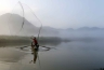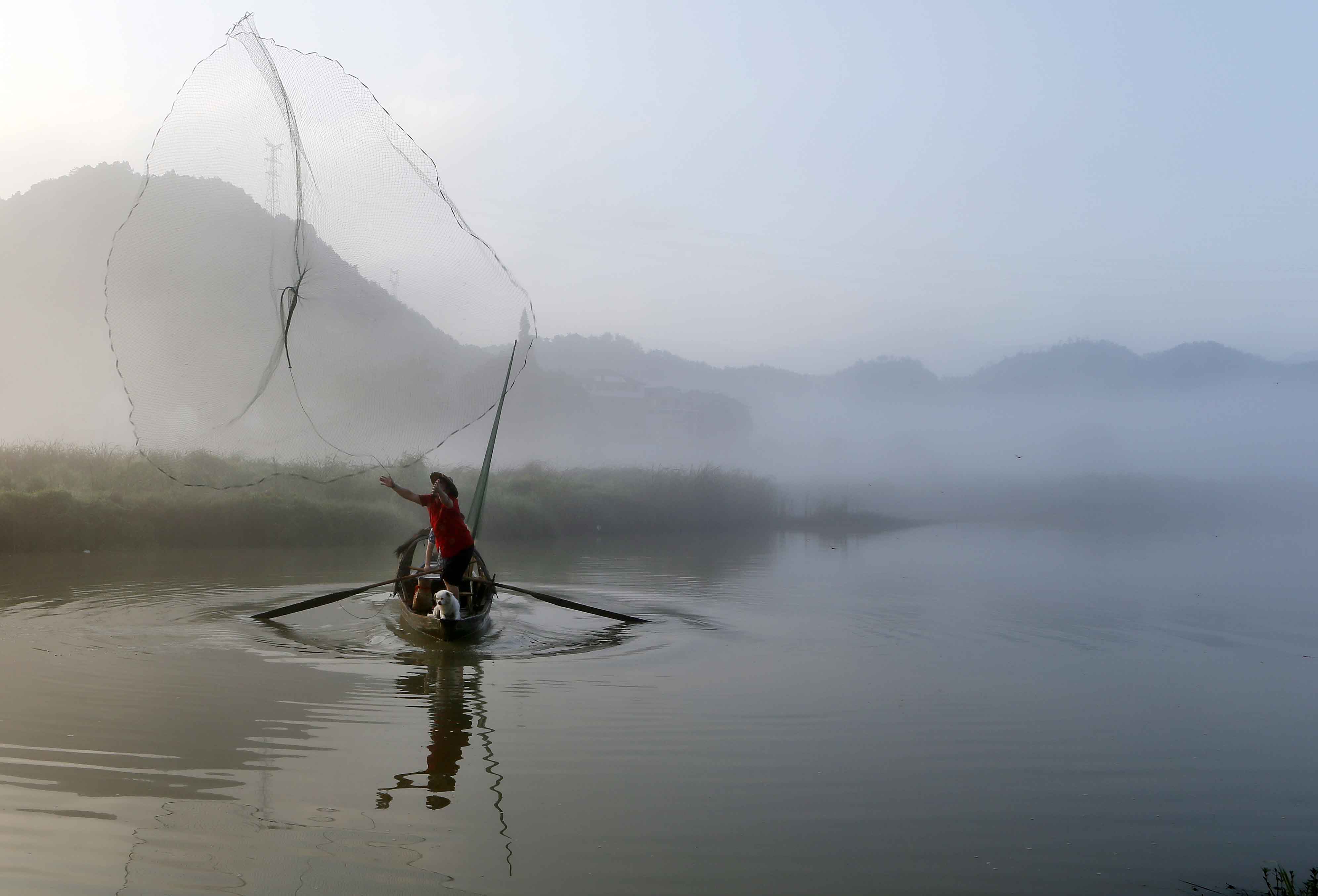 圖為晨霧中飄忽似仙境的撒網“捕魚”圖極有韻味。
