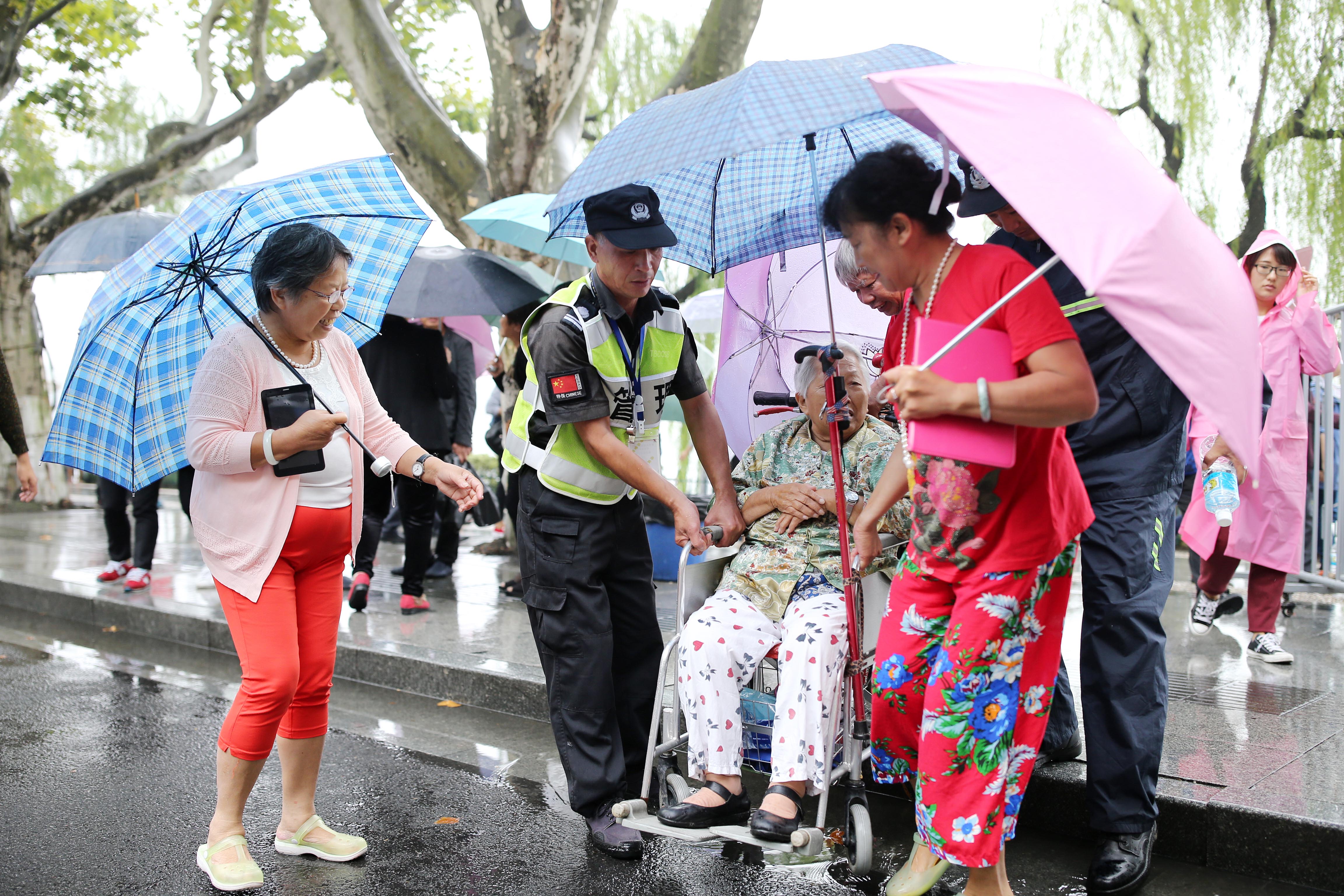 浙江黨建網(wǎng)訊(浙江日?qǐng)?bào)記者 魏志陽(yáng) 攝)10月7日,國(guó)慶長(zhǎng)假最后一天,杭州陰雨綿綿,西湖風(fēng)景名勝區(qū)岳廟管理處安保人員詹明雨中堅(jiān)守崗位,在斷橋口勸導(dǎo)游客秩序進(jìn)出景區(qū),并幫助把行動(dòng)不便游客抬下臺(tái)階順利出行。