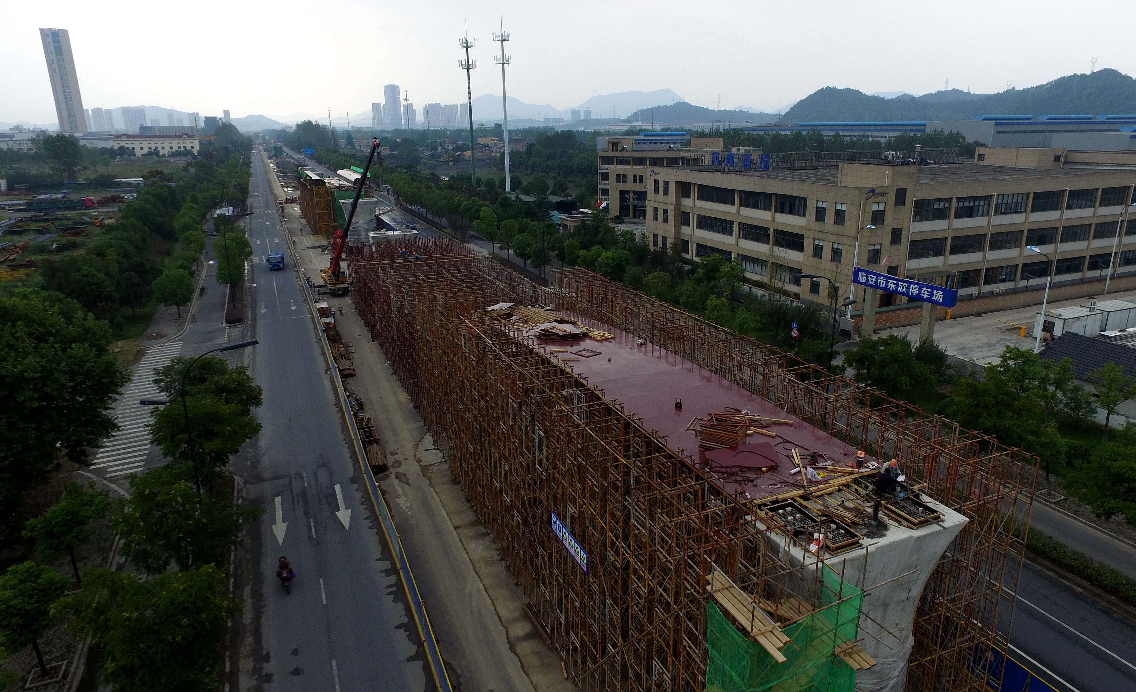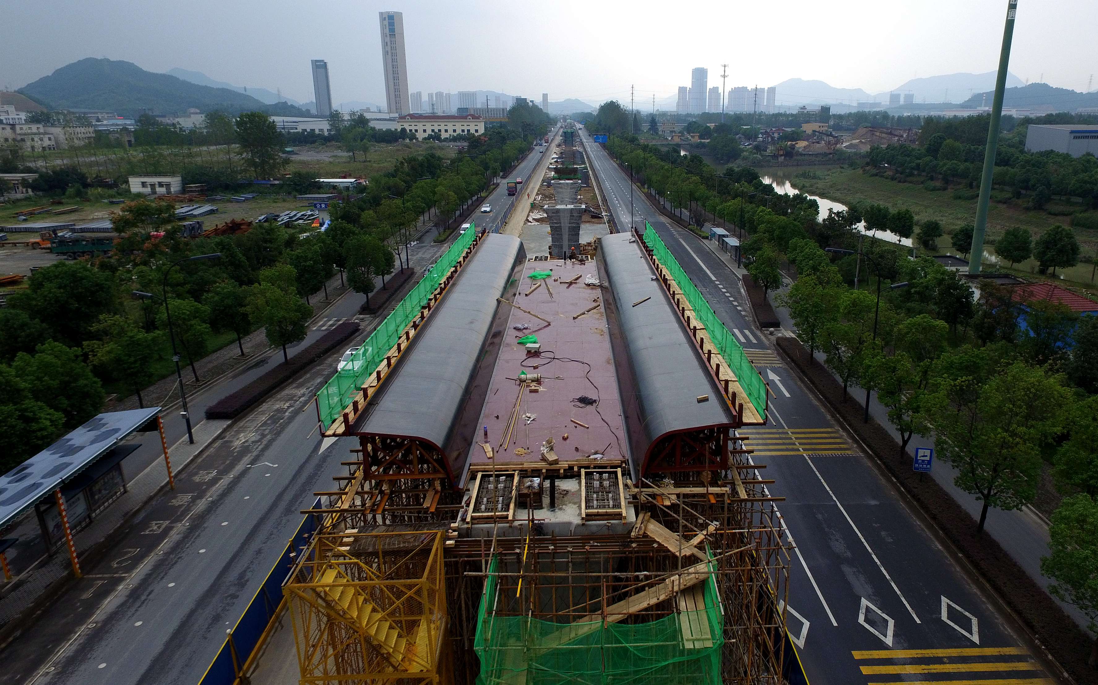 浙江黨建網訊(浙江日報記者 董旭明 攝)10月8日,軌道交通臨安線試驗段,工人們正在加緊施工。目前試驗段樁基、承臺澆筑已基本完工。據了解,該工程10月全線開工,計劃在2019年年底前與杭州地鐵5號線同步建成通車。