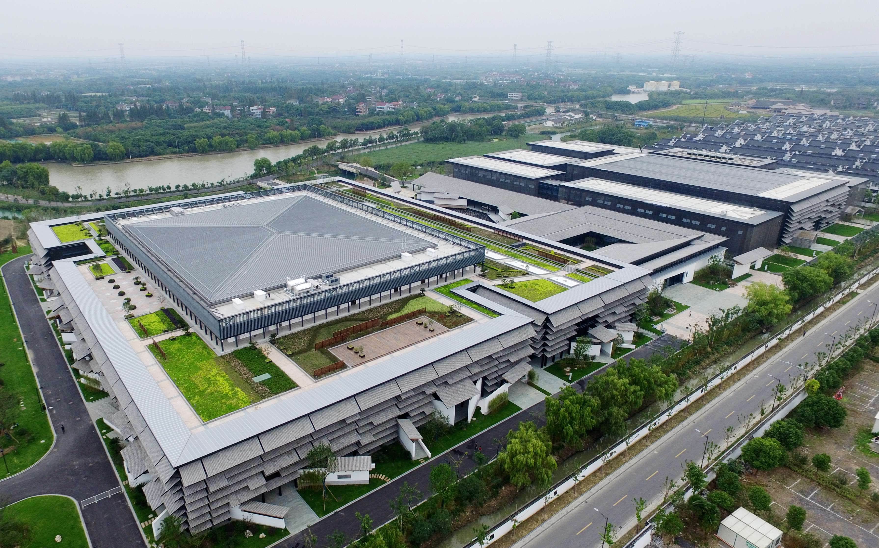 新建成的烏鎮互聯網國際會展中心由“普利茲克建筑獎”獲得者、中國美院教授王澍先生領銜設計。整個中心建筑面積8.1萬平方米,分會議中心、接待中心和展覽中心三個功能區塊。其中占地4000平方米的主會場可容納3000名嘉賓記者參會,另有十余個大大小小的會場,用于舉辦互聯網大會各分論壇。