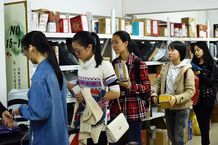 11月12日,不少網(wǎng)購物品已經(jīng)送達(dá)高校,浙江大學(xué)學(xué)生紛紛來到取件處,取走“雙11”的網(wǎng)購物品。