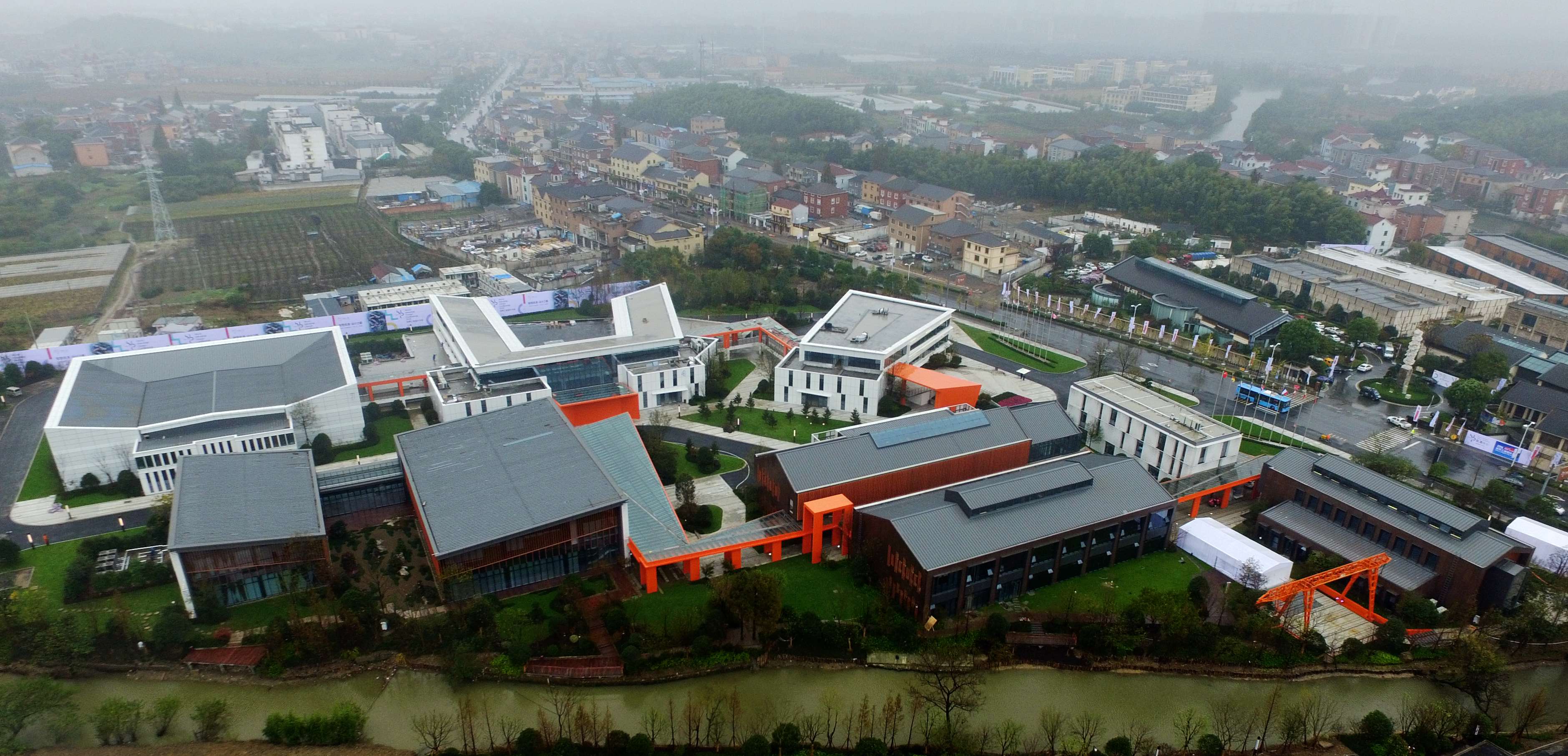 浙江黨建網訊(浙江日報記者 董旭明 攝)11月22日,從空中俯瞰杭州余杭區良渚夢棲設計小鎮區塊,一片以灰、白、橙為主色調,極具設計感的建筑群已經建成。12月1日至4日,首屆世界工業設計大會(WIDC)將在這里召開,這是繼G20峰會后,杭州再次迎來的世界級盛會,將有來自全球五大洲30多個國家,50多個設計組織,500余名行業精英匯聚夢棲小鎮,共享全球設計資源,攜手推動設計創新。