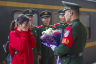 浙江黨建網(wǎng)訊(浙江日報記者 倪雁強 攝)1月22日下午,杭州火車站,忙碌的站臺發(fā)生令人暖心的一幕。一名年輕女子在武警戰(zhàn)士們的簇擁下走向站得筆挺的武警張清華。兩個人牽著彼此的手,在大家的見證下,在火車站舉行了一場簡單而又浪漫的婚禮。這場特殊的婚禮中,沒有豪華的宴席,沒有考究的裝飾,但卻載滿了兄弟戰(zhàn)友的祝福。