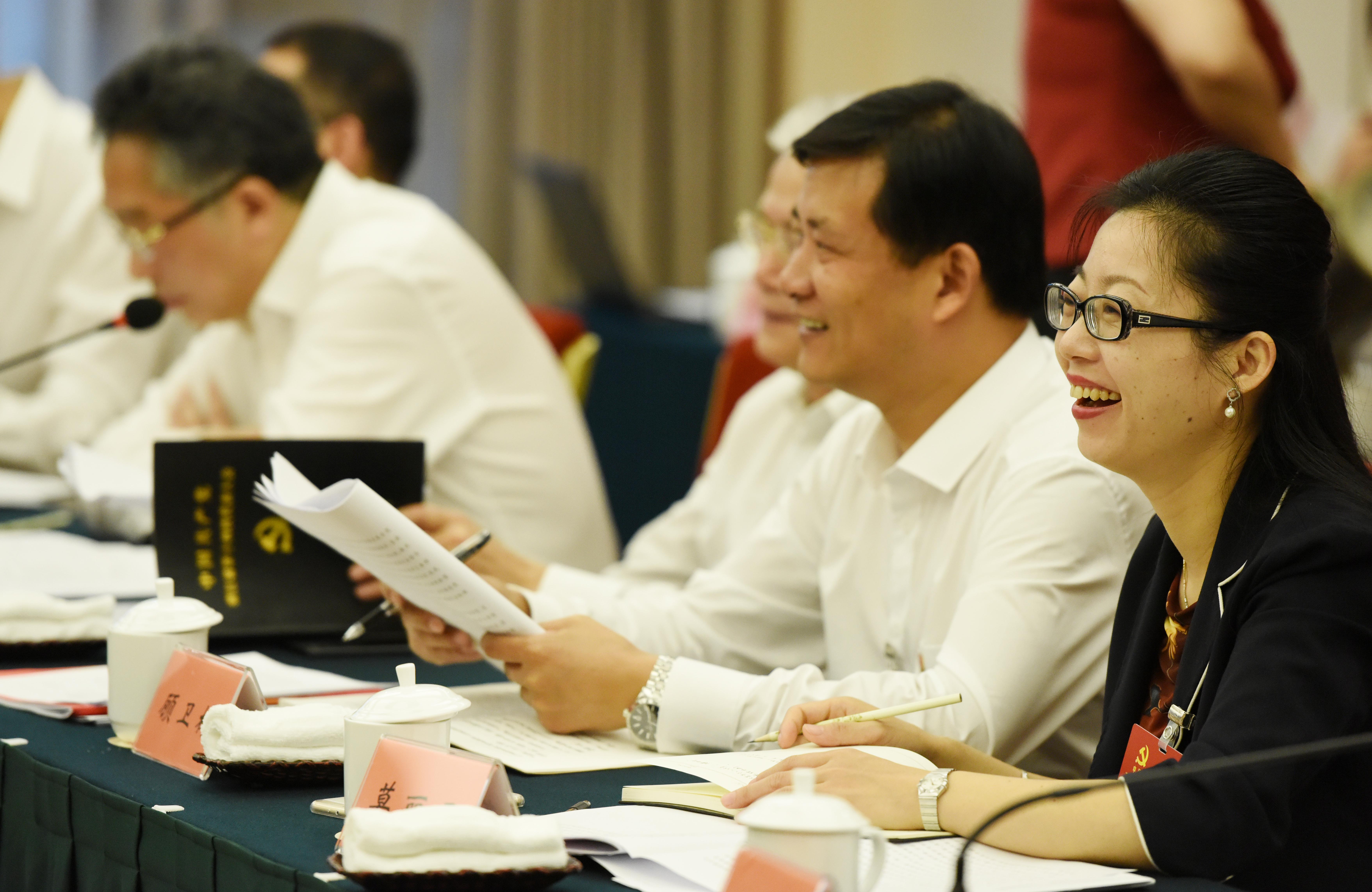 6月13日,省第十四次黨代會各代表團分組審議省黨代會報告。省屬企業代表團的代表就國有企業參與建設富強浙江積極建言。(浙江日報記者 董旭明 倪雁強 張迪 攝)