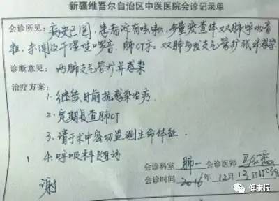 一張2016年12月13日的會診記錄單,因為字跡工整清晰,被網友稱為“病歷界的一股清流”。這張走紅網絡的會診記錄單,是新疆維吾爾自治區中醫醫院呼吸一科醫生馬紅霞手寫的。馬紅霞1月11日在接受采訪時表示,因為工作忙碌一直都沒注意到自己“紅了”,也沒覺得自己字寫得好,就是比較工整。