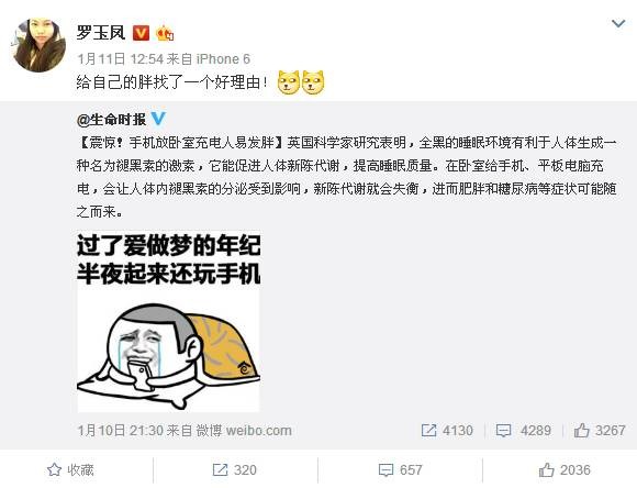前幾天,生命君在微博發布了這樣一條內容,“手機放臥室充電易發胖”,引發眾多網友熱議。連鳳姐都出來說話了:給自己的胖找了一個好理由!
